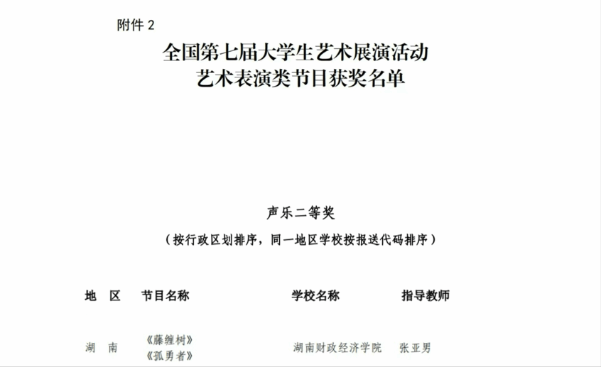(本网讯)近日,教育部公布全国第七届大学生艺术展演活动获奖名单,永利大学生合唱团的合唱节目《藤缠树》《孤勇者》荣获艺术表演节目声乐类国家二等奖,人文与艺术学院教师张亚男获指导教师奖。