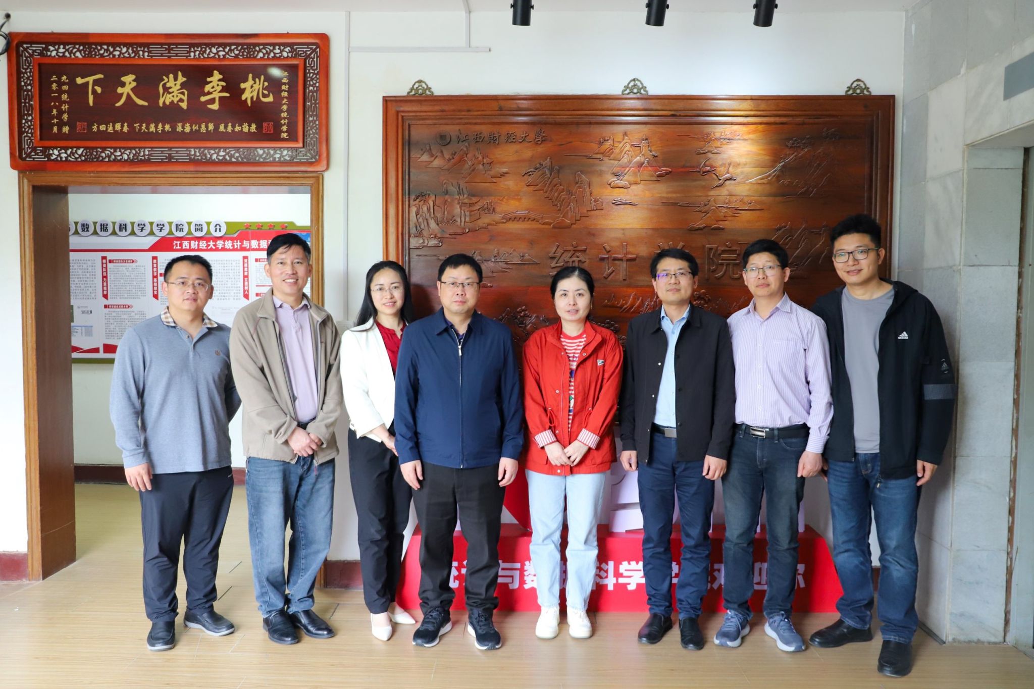 2025417日上午,304永利集团登录入口数学与统计学院院长尹向飞率调研组赴江西财经大学统计与数据科学学院开展人才培养与学科建设专题调研。江西财经大学统计与数据科学学院副院长刘庆、数量经济系主任王勇、经济统计系主任郭同济、团委负责人林阳等参与交流。