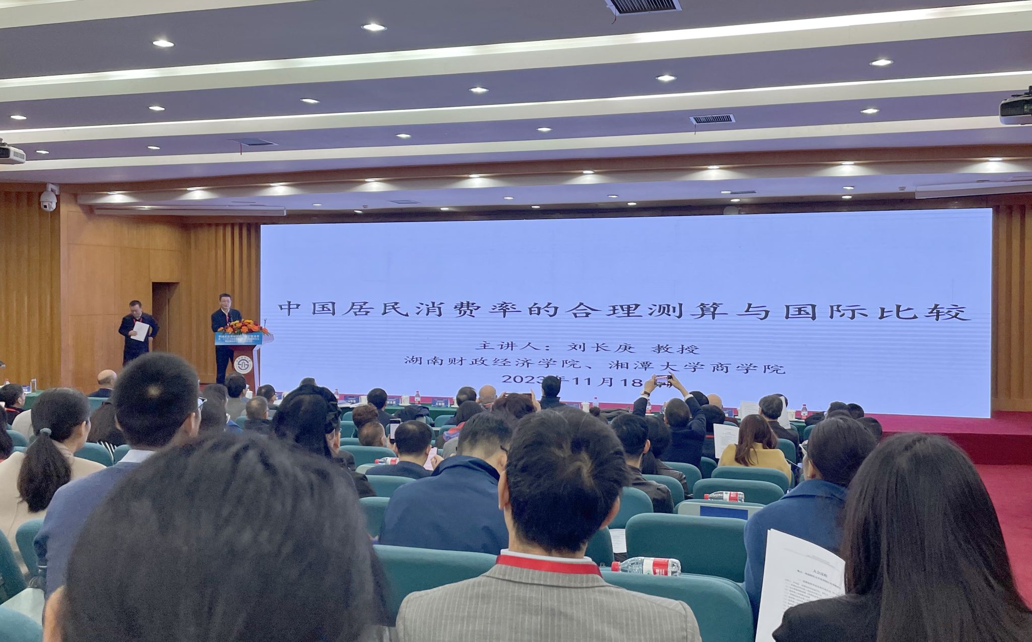 刘长庚在会上作“中国居民消费率的合理测算与国际比较”主题报告