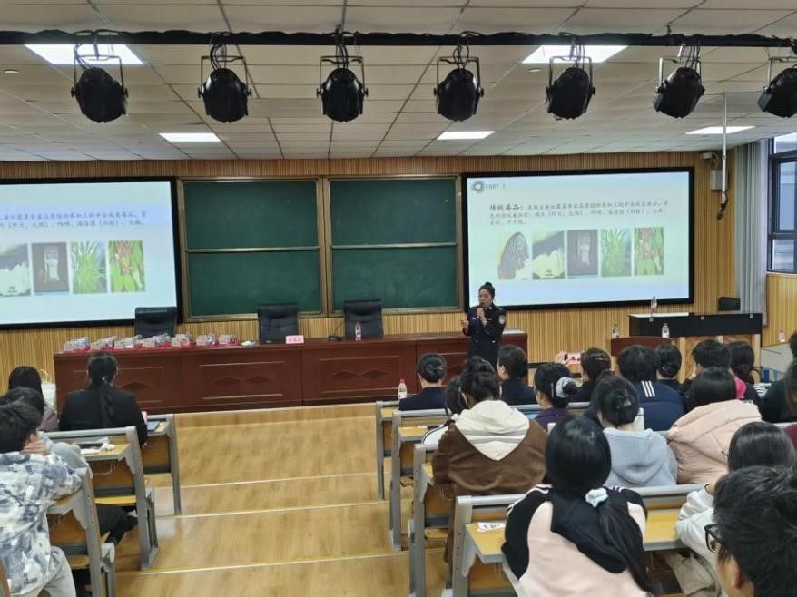 讲座中,李菁菁警官结合多年一线经验,以案例与数据为支撑,生动讲解毒品种类、伪装形式及危害。她从传统毒品讲到新型合成毒品,重点拆解“奶茶”“跳跳糖”“邮票”等伪装毒品的特征与识别方法,让学生认清毒品隐蔽性。同时,李警官解读禁毒法律法规,警示涉毒法律后果,提醒学生远离不良社交圈,遇涉毒问题及时向学校或公安机关求助。