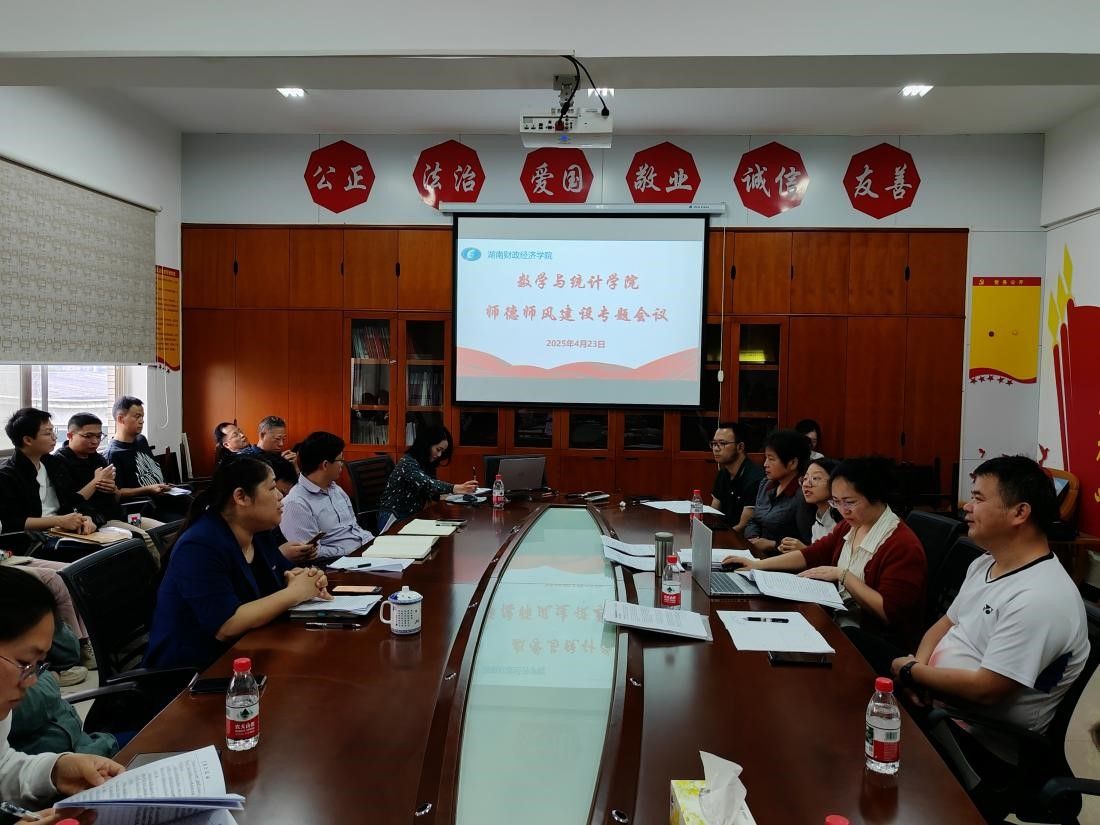 为深入贯彻落实党的二十大关于教育强国建设的战略部署,严格执行教育部《关于加强和改进新时代师德师风意见》及湖南省教育厅相关文件精神,数学与统计学院于423日下午在办公楼809会议召开师德师风建设专项会议,全院专任教师齐聚一堂,共同学习、研讨师德师风与课程思政的融合路径。会议由学院党总支书记王萱主持。