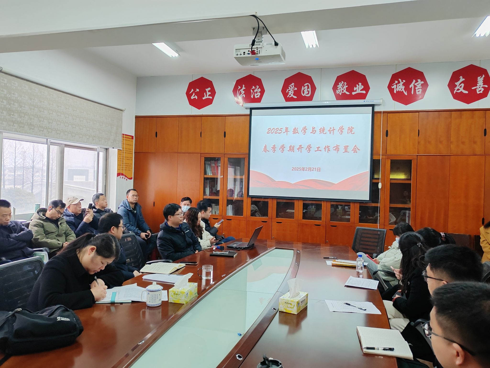 2025年2月21日上午,数学与统计学院在办公楼809会议室召开2025年春季学期工作布置会,会议由尹向飞院长主持,全院教职工参加 。会议现场吕胜祥副院长就上学期期末教学检查情况进行了反馈,并对本学期教学工作思路和要点、毕业论文、教学竞赛等工作进行了阐述,希望全院老师以审核评估指标体系为标准,进一步规范教学的各个基本环节,加强教研教改活动,提高教研成果与产出,以系部为单位,打磨金课。党总支书记王萱在会上传达了2025年全省教育工作会议的精神,...