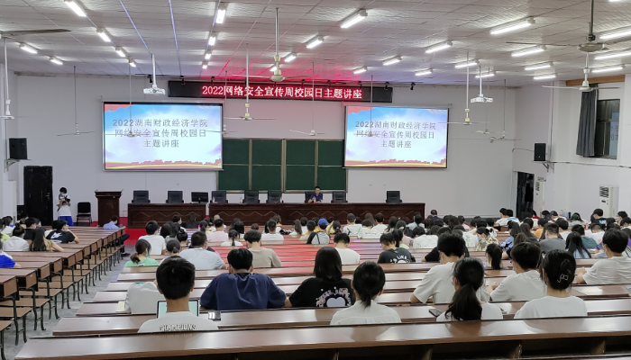 (本网讯)2022年国家网络安全宣传周于9月5日至11日在全国范围内统一开展,主题为“网络安全为人民,网络安全靠人民”。为贯彻落实国家网络安全宣传周活动要求,9月6日,永利在二教学楼阶梯一教室举办网络安全宣传周校园日主题讲座。长沙市岳麓区公安局网络安全教官易灿辉和永利学生工作处思想政治教育科副科长周雅担任主讲人,全校近200名学生到场聆听。