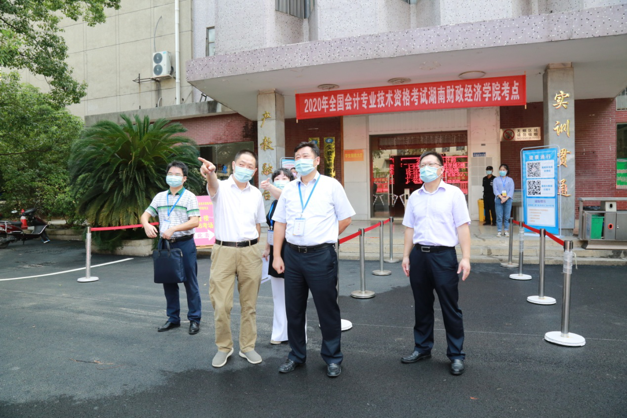 (本网讯)9月1日上午,省纪委省监委驻省财政厅纪检监察组组长、厅党组成员石建国,省财政厅会计管理处处长曾子兰,长沙市财政局总会计师杨健、会计处处长夏跃兵一行来永利就2020年度会计专业技术资格全国统一考试组考工作进行现场检查。学校党委书记肖湘愚、校长刘长庚、副校长刘建民、副校长王焕清、纪委书记李雪山及相关职能部门负责人陪同检查。