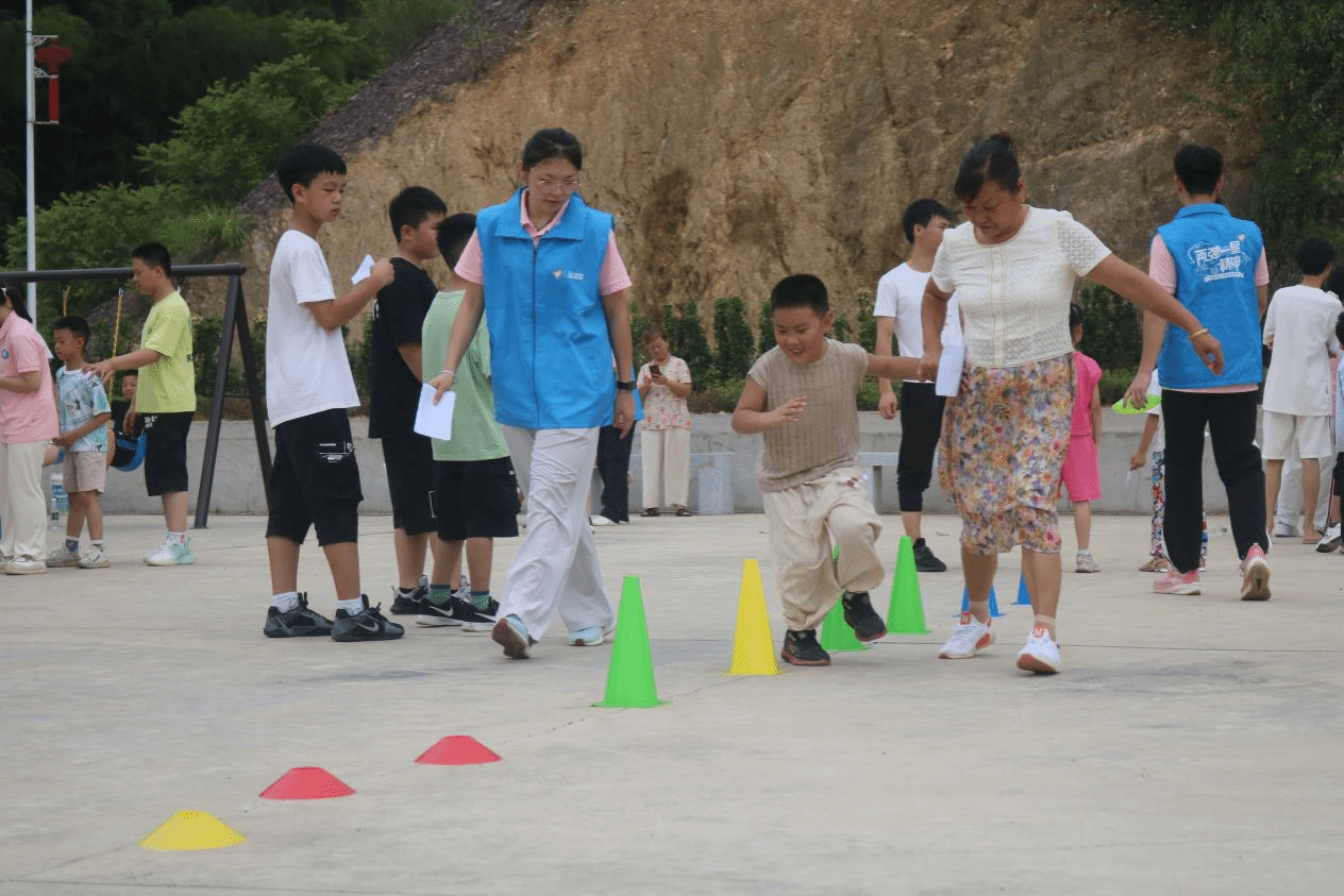 为丰富乡村儿童暑期生活,增进亲子情感交流,弘扬“两弹一星”崇高精神,7月20日,在羊角塘镇竹田村村委会的大力支持下,304永利集团登录入口体育学院筑梦支教队在村金矿广场成功举办了一场别开生面的“大手牵小手,欢乐满竹田”亲子运动会。活动现场欢声笑语不断,50余组家庭热情参与,父母与孩子大手拉小手,共同挑战趣味体育项目,在运动中感受协作乐趣,体悟精神力量。