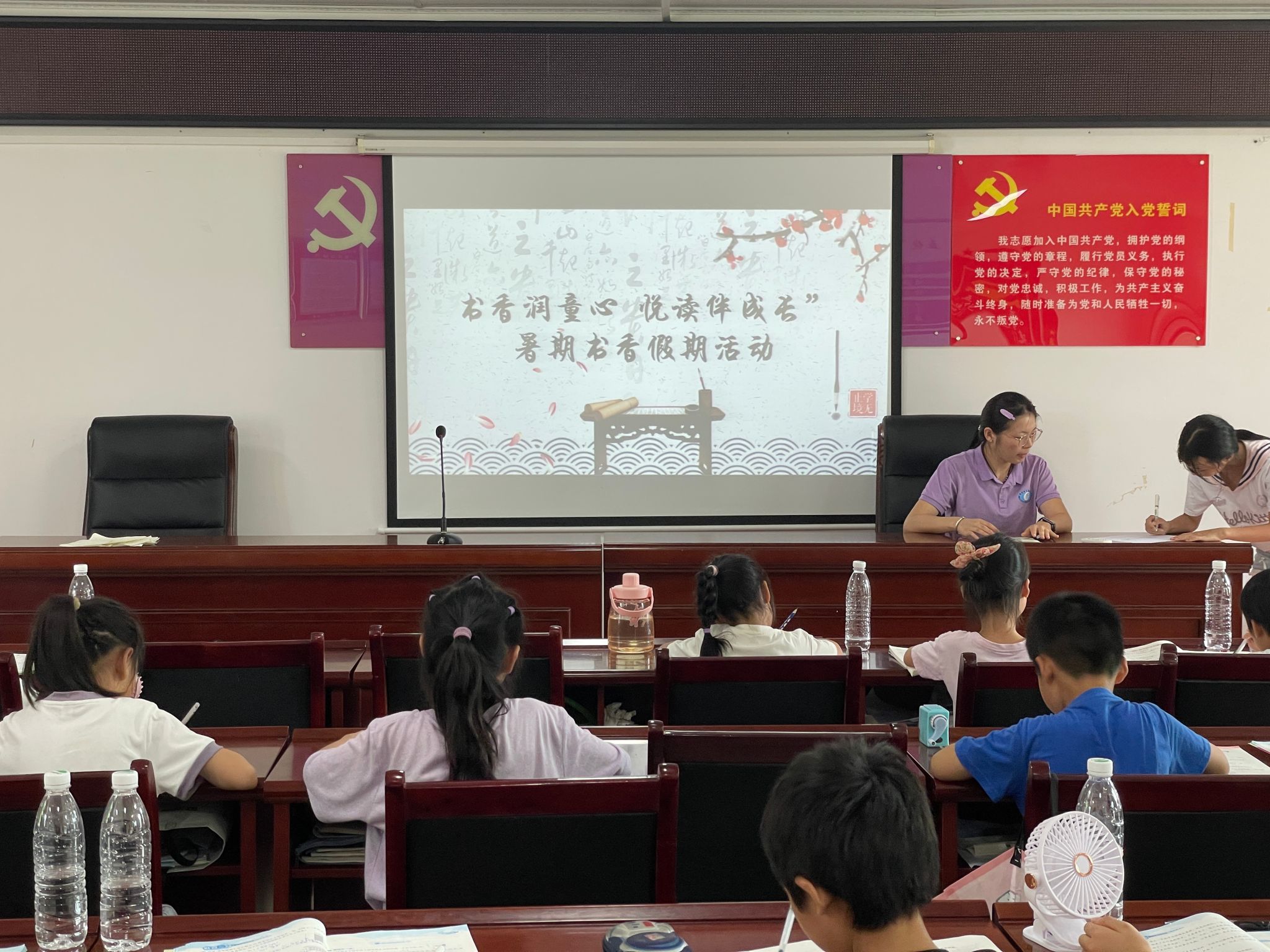同期,筑梦支教队还精心组织了“书香润童心,悦读伴成长”暑期书香假期活动。活动中,孩子们积极响应号召,纷纷从家中带来自己心爱的书籍。在志愿者们的引导下,孩子们热情地走上讲台,化身“小小荐书官”,分享自己带来的故事书、科普读物或英雄传记,讲述书中的精彩情节、学到的知识或敬佩的人物。真诚的分享,不仅锻炼了孩子们的表达能力,更在交换书本、交流感悟的过程中拓宽视野,增进友谊。
