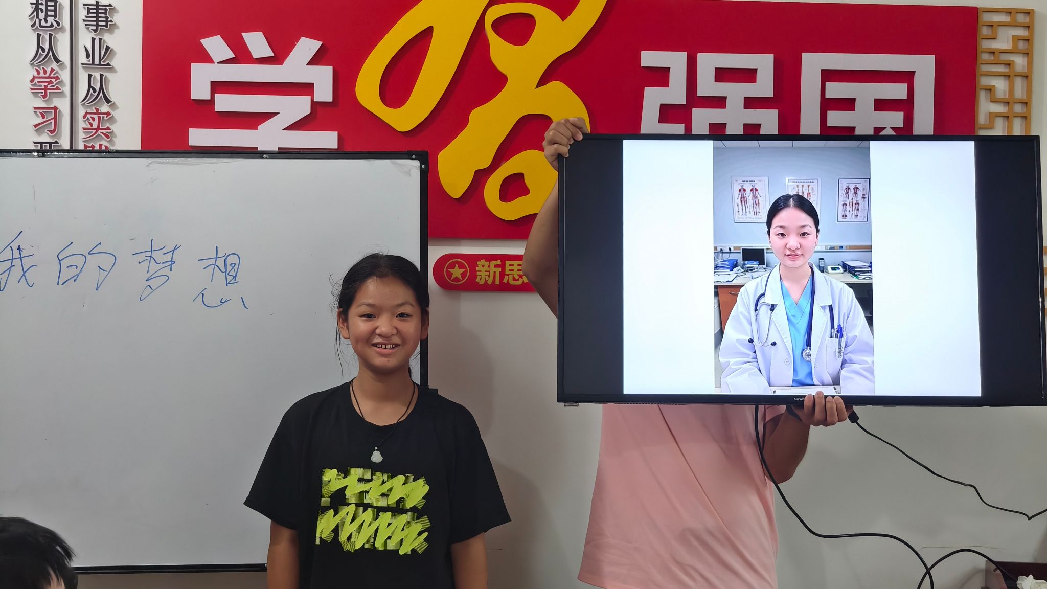 活动前日,志愿者们深入班级,与孩子们展开了一场关于“长大后你想成为什么样的人”的暖心对话。“我想穿上白大褂,救死扶伤让病人摆脱痛苦!”“我的梦想是成为一名军人,保卫祖国边疆!”……孩子们纯真而热烈的梦想被一一记录。这些心声,不仅饱含着对未来的无限憧憬,也流露出建设家乡、服务社会、保卫祖国的愿望。
