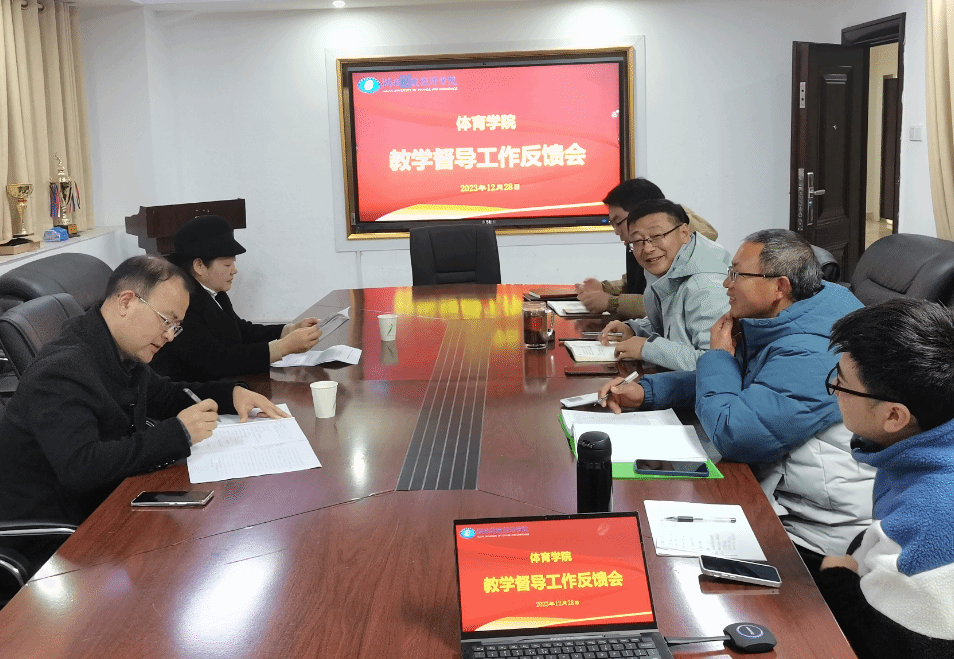 2023年12月28日上午,体育学院在体育馆237会议室召开教学督导教学督查情况反馈会,就体院本学期教学督查情况进行反馈。校督导组曾丽君、质评处副处长王依、体院副院长齐立斌、教科办主任汪洋以及各系部主任参加了会议,会议由齐立斌主持。