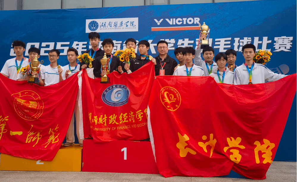 2025年11月8日至16日,湖南省大学生羽毛球比赛在湖南医药学院(怀化市)激情挥拍。作为我省高校羽毛球项目中规模最大、水平最高、影响最广的赛事之一,本届比赛吸引了全省74所高校的800余名羽毛球运动员同台竞技。永利羽毛球队斩获4金、1银、1铜的辉煌战绩,夺得男女团“双冠”,刷新了校史最佳纪录,更实现了里程碑式的跨越,在兄弟院校中赢得了广泛赞誉。