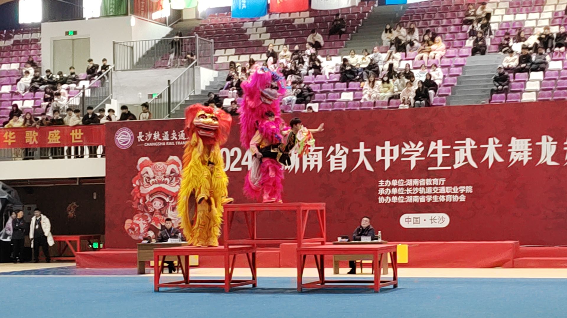 此次比赛共有来自全省各地市州的76所大、中学校,99支参赛队伍,1361名运动员齐聚一堂,共同展现了湖南省大中学生卓越的武术舞龙舞狮技艺和深厚的传统文化传承精神。