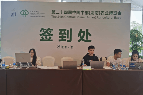为填补农博会接待组人手的不足,外国语学院从21名志愿者中抽派4名志愿者进入接待组。该组志愿者以细心、热心、专心的态度完成了嘉宾信息确认、接站人员安排、工作车辆派遣、外宾翻译服务等工作。另外17名志愿者在长沙国际会展中心各个展馆开展工作,五天工作期间内,他们恪尽职守、准时到岗、不辞辛劳地完成了组委员安排的各项工作。