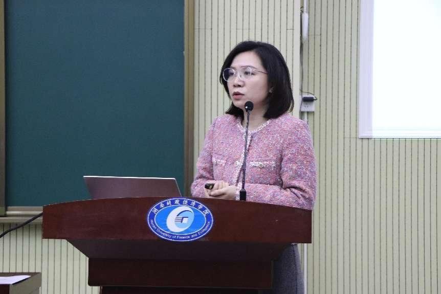 图为湖南省外事工作委员会副主任邱爱华做主旨报告