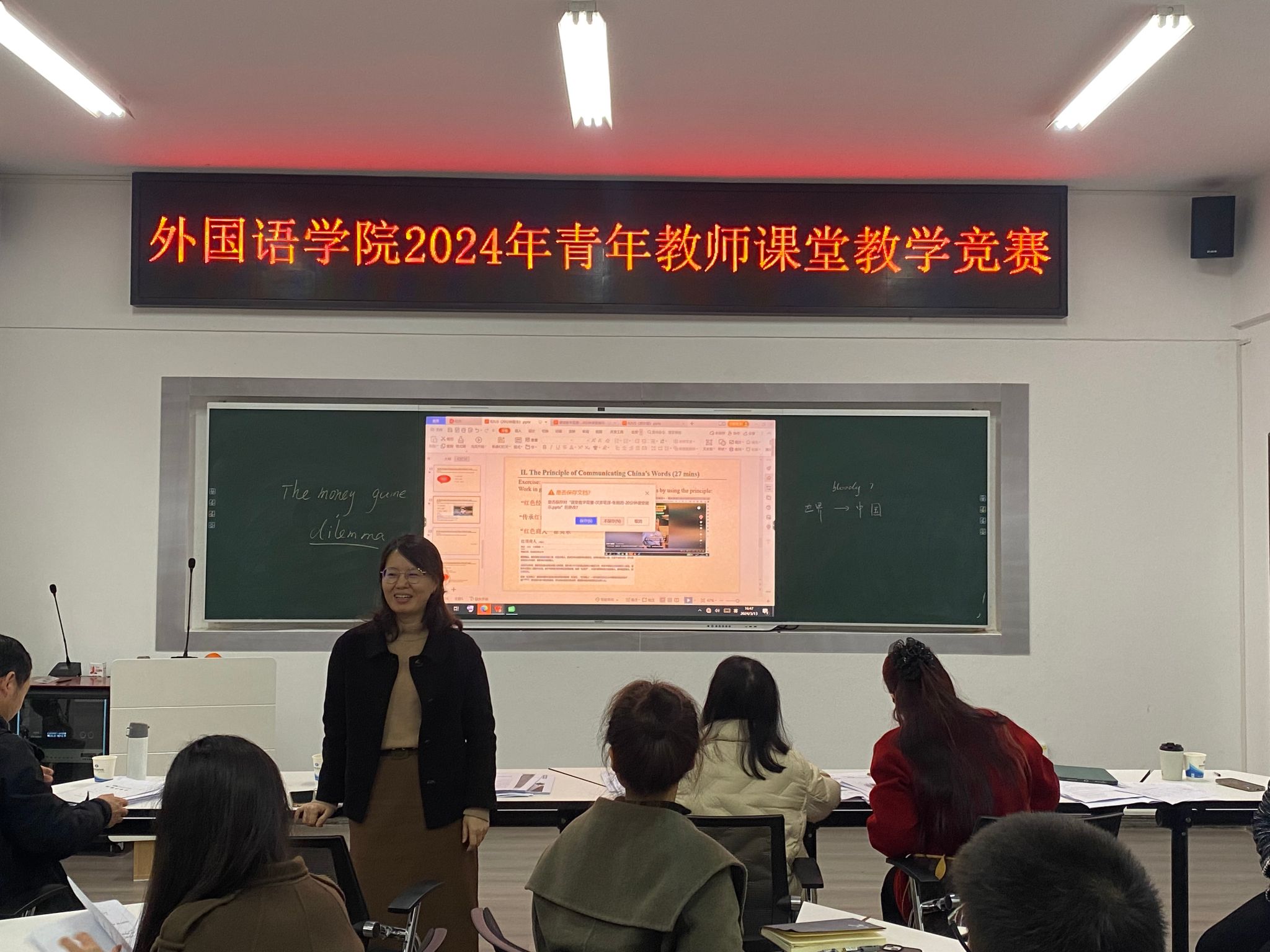 (本网讯)为进一步加强外国语学院的教师队伍建设,进一步提升学院青年教师教学能力与水平,促进青年教师专业发展,3月13日下午外国语学院在办公楼317举办2024年青年教师课堂教学竞赛。共有5支教师团队参加比赛,副院长李曦主持比赛。