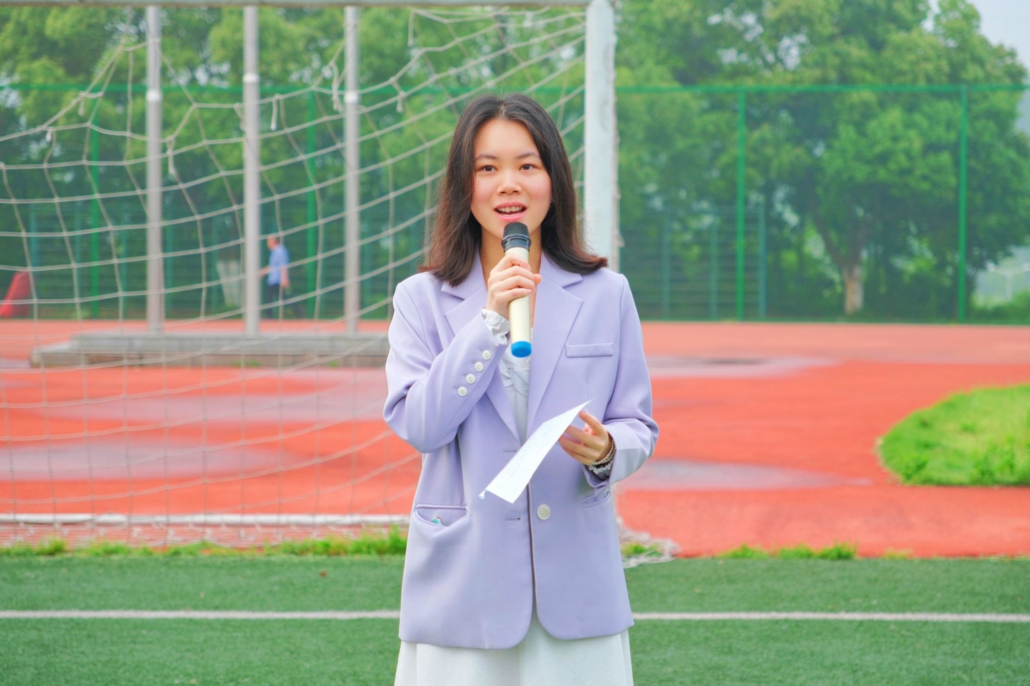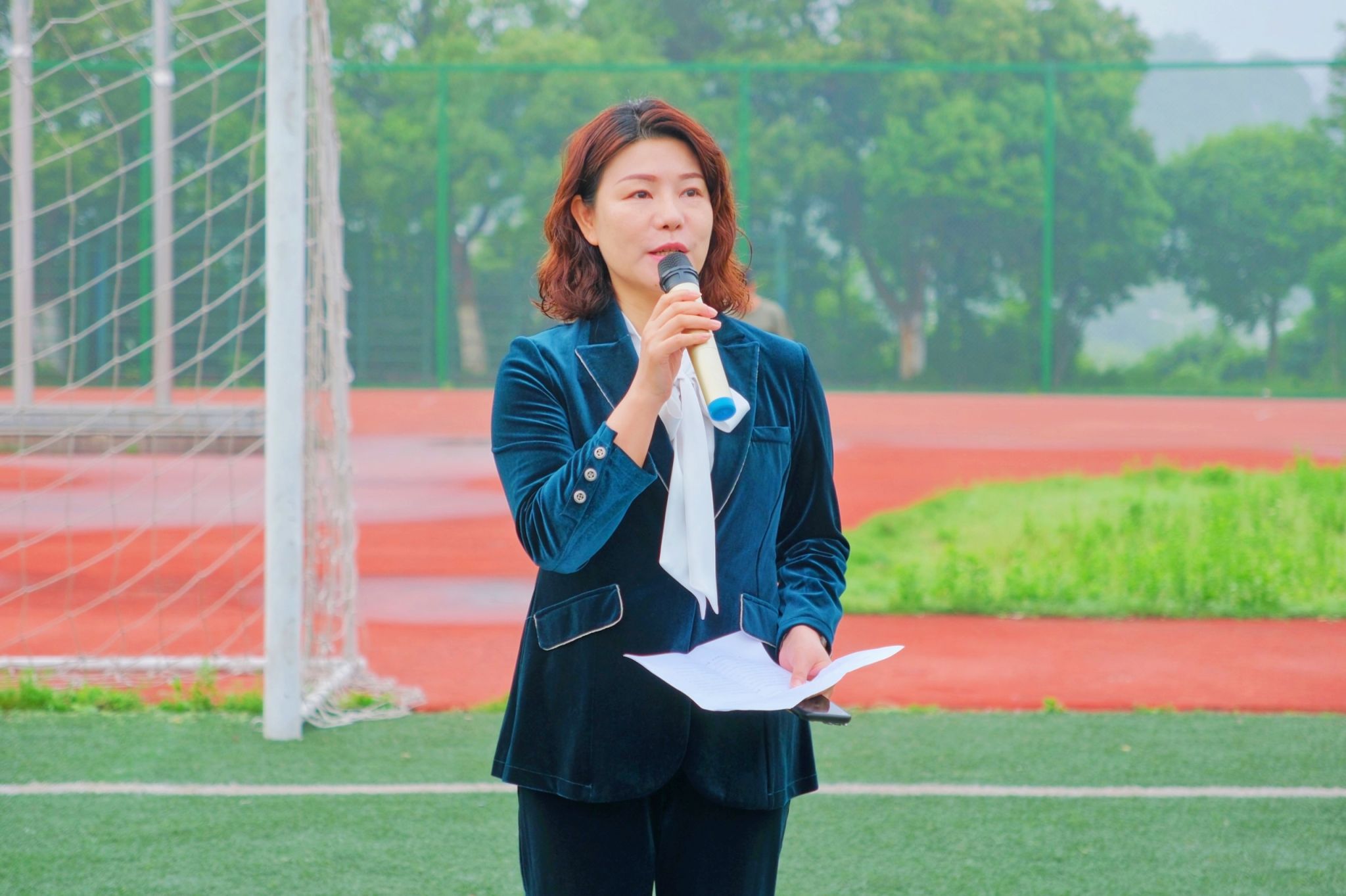 张鹏在国旗下讲话,她指出:新时代青年应当担负起民族复兴的大任,不辜负党和人民的殷切期望。希望同学们树立远大理想,做有抱负有担当的爱国青年;砥砺奋斗,做有毅力有才华的实干青年;崇德修身,做有温度懂感恩的高尚青年。