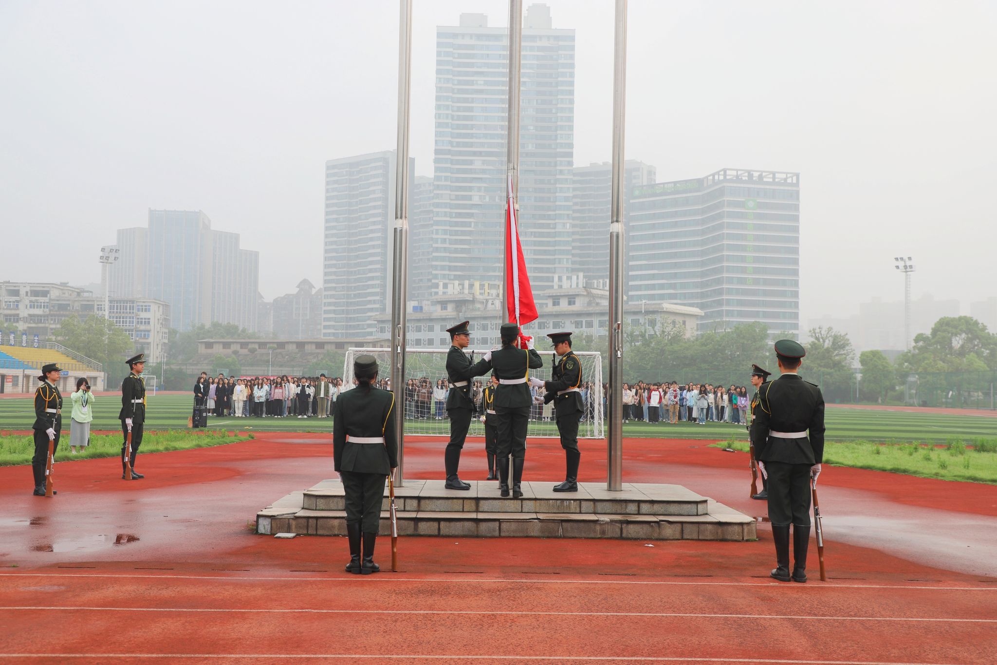 (本网讯)为深化爱国主义教育,坚定理想信念,外国语学院于4月22日6:50在主校区操场举行了隆重的升旗仪式。外国语学院党委副书记张鹏,学工办主任肖叶枝,团总支书记代承轩,辅导员杨舒淇、马小红以及2021级、2022级全体同学参加本次升旗仪式。