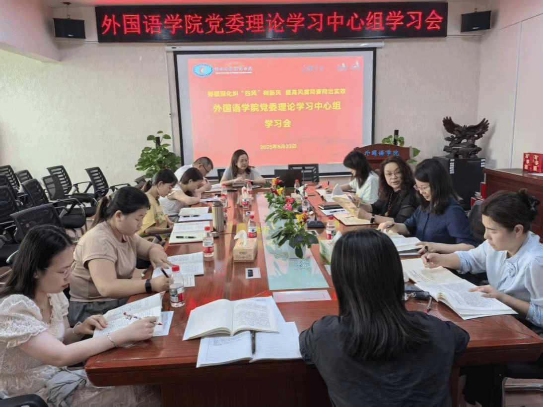 (本网讯)5月23日,外国语学院党委理论学习中心组召开专题学习会议,会议围绕深化纠治“四风”开展集中学习研讨。中心组成员结合工作实际深入交流,院党委书记凌飞主持会议并作总结讲话。