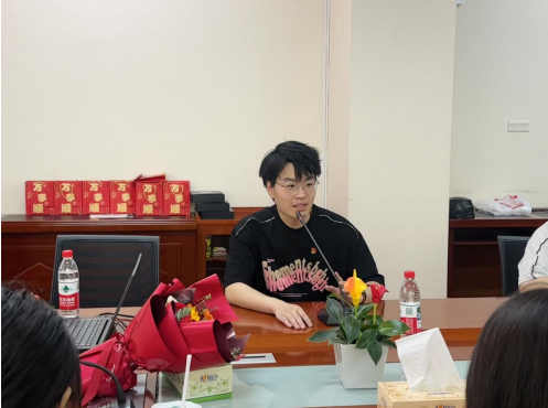会议伊始,代承轩作开场发言。随后,张鹏简要介绍了石磊老同志的参军入伍及退伍后的工作经历,她指出,老党员、老同志们的身上承载着厚重红色记忆与坚定理想信念,希望同学们认真聆听,用心感悟,从故事中汲取力量,传承红色基因,让革命先辈的精神在新时代焕发光彩,全体同学要将红色精神转化为学习、工作的动力,为推动学校各项事业发展贡献力量。