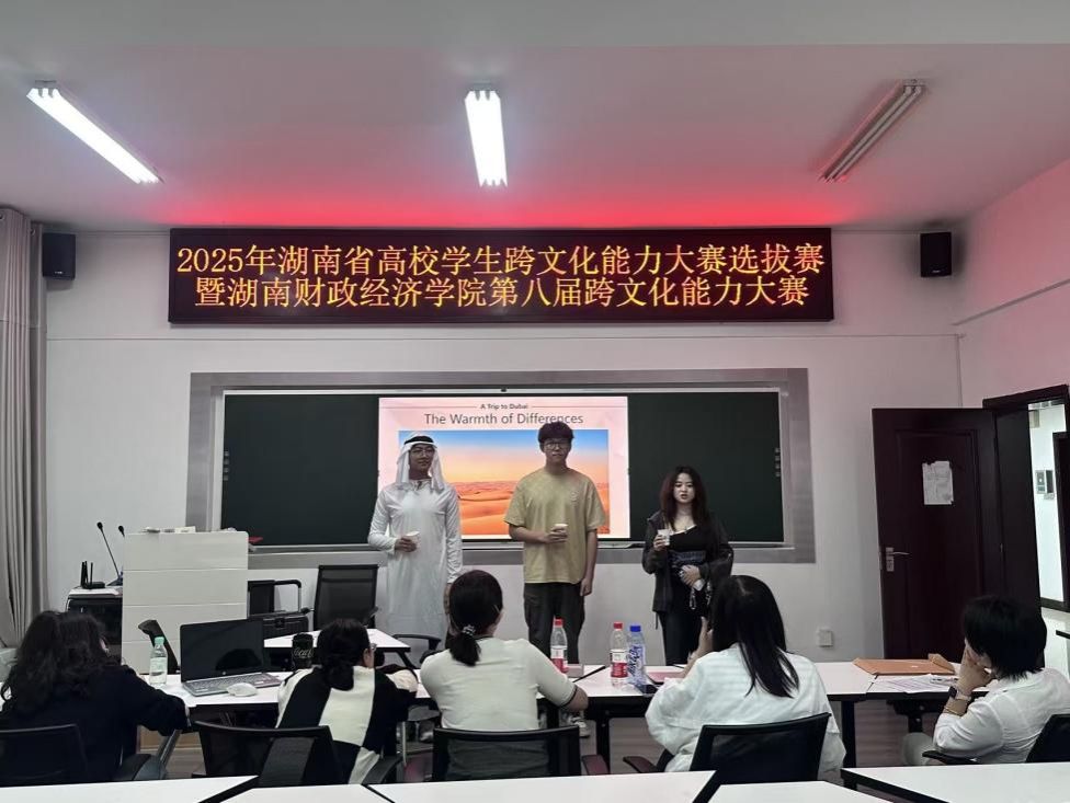 (本网讯)5月28日,外国语学院在办公楼317开展了2025年湖南省高校学生跨文化能力大赛选拔赛暨304永利集团登录入口第八届跨文化能力大赛,共18组选手参加了本次比赛。该院商务英语系主任邱高、英语系主任肖红芳,以及胡敏、邹清华、宾胜男等老师担任比赛评委。