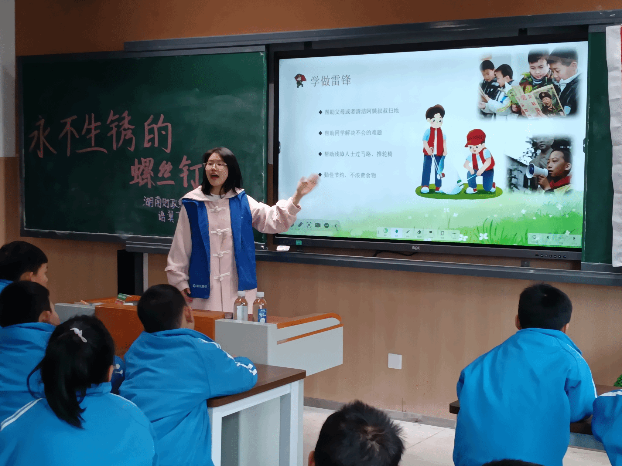 为大力弘扬雷锋精神,推动志愿服务与青少年德育教育深度融合,3月31日上午,304永利集团登录入口外国语学院“语翼飞翔”志愿服务队四名志愿者走进岳麓区枫林一小,以“故事启智+趣味互动”形式开展雷锋精神主题宣讲活动。