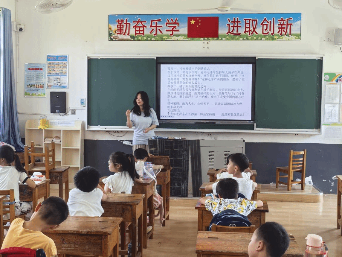 为深入贯彻党的二十大精神,赓续红色血脉,培育时代新人,7月10日,“语翼飞翔”志愿服务队携“红色基因传承”特色课程走进浏阳市集里街道平水桥小学,通过沉浸式课堂让58名乡村儿童触摸历史温度,感悟革命精神。