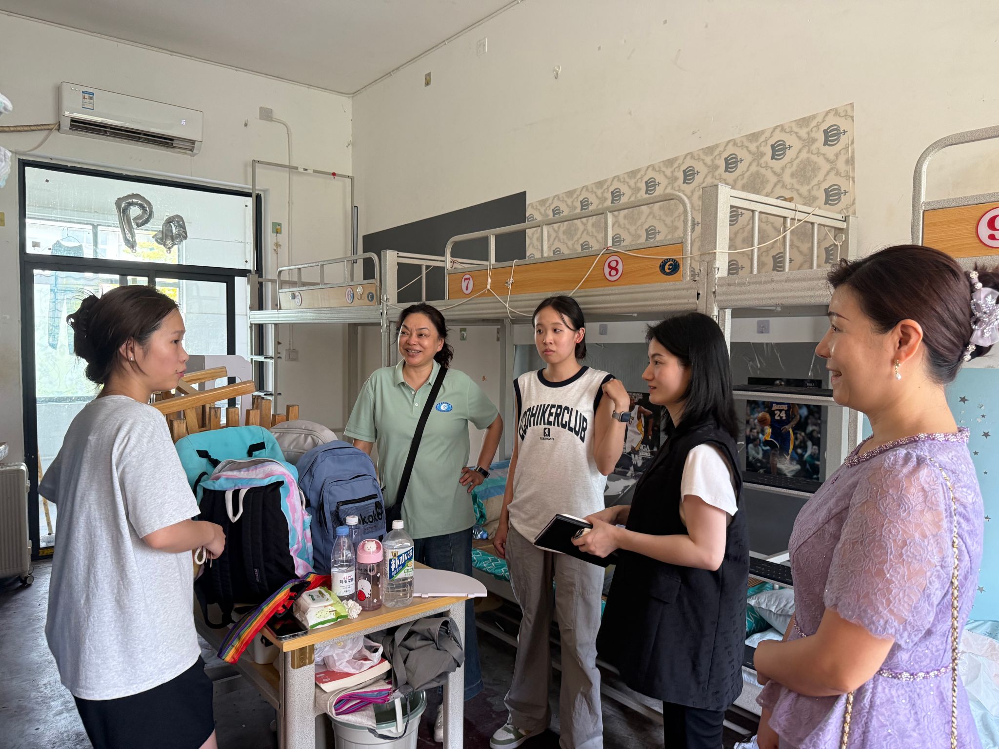 (本网讯)2025年9月7日,学院迎来全体老生返校报到与专升本新生入学。为深入了解学生返校情况,关心同学们的学习生活状态,外国语学院党委书记凌飞、党委副书记张鹏、学工办主任肖叶枝及全体辅导员老师深入学生宿舍,亲切看望返校老生和新入学的专升本同学,送上学院的关怀与问候。