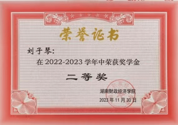 5.荣誉奖项:湖南省普通高等学校2025届优秀毕业生、2022—2023国家励志奖学金获得者