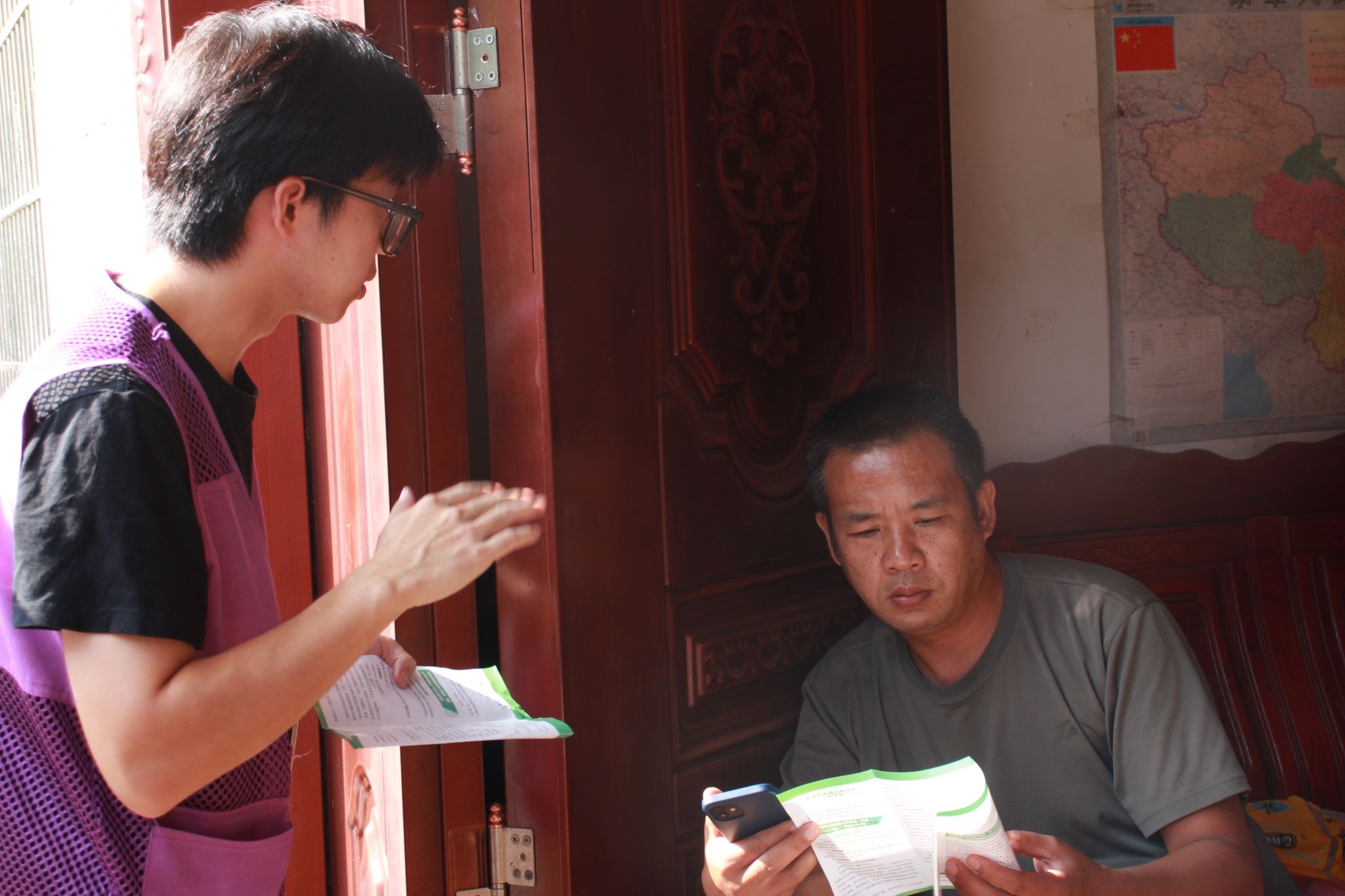 图为志愿者为村民讲解资助宣传政策 黄路慧/摄