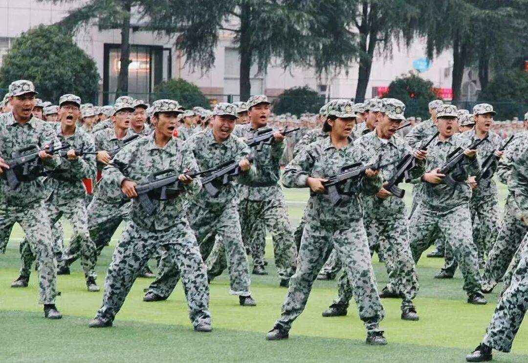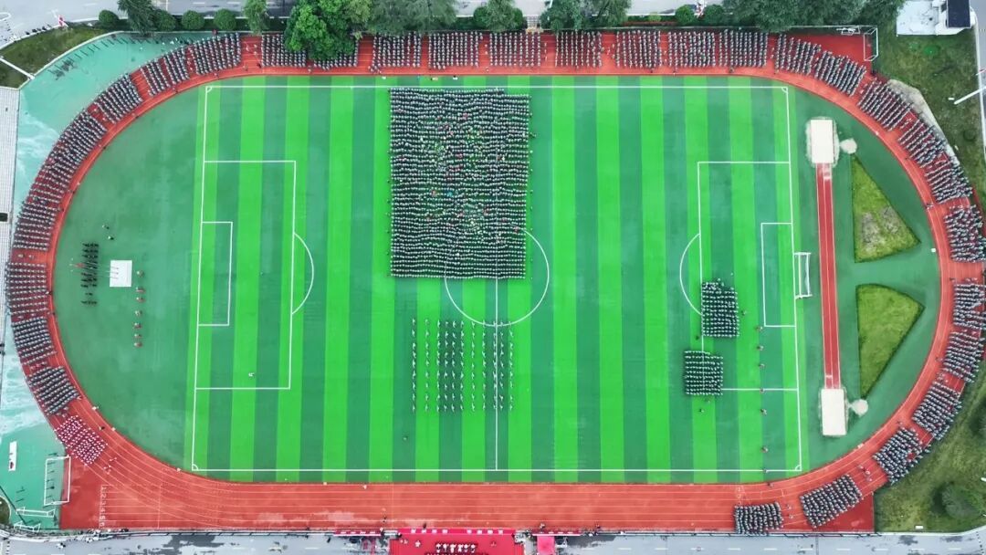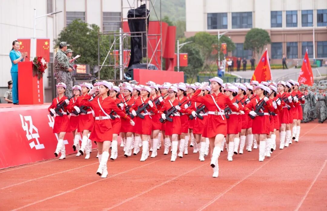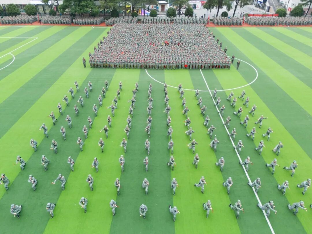 历经14天骄阳与风雨的洗礼,2025级学子完成了从青涩到坚韧的蜕变。军事训练成果汇报表演中,31支分列式方阵步伐铿锵、口号嘹亮,依次正步通过主席台,展现昂扬风貌;擒敌拳方阵招式凌厉、气势如虹,匕首操、刺杀操方阵在战鼓声中迅猛出击,杀声震耳;2050名学生组成的文化方阵先后呈现出“雷锋”“正德厚生 经世济用”“我❤中国”“1933-2025”等图案与字样,齐声宣誓“请党放心,强国有我”,滚烫的誓言彰显着新时代青年的责任与担当。