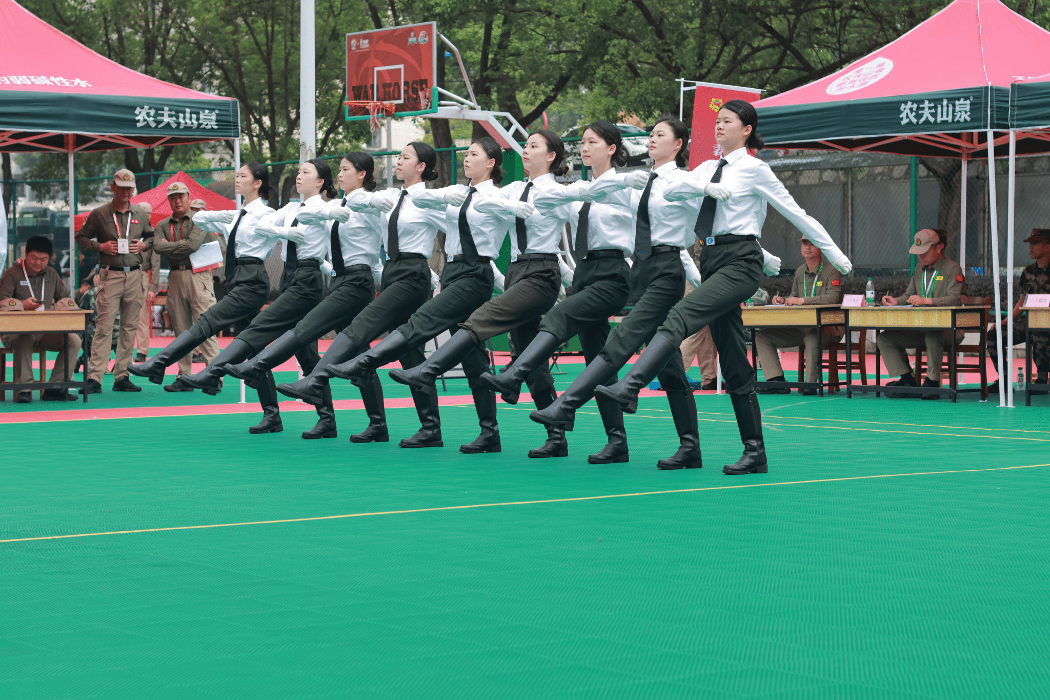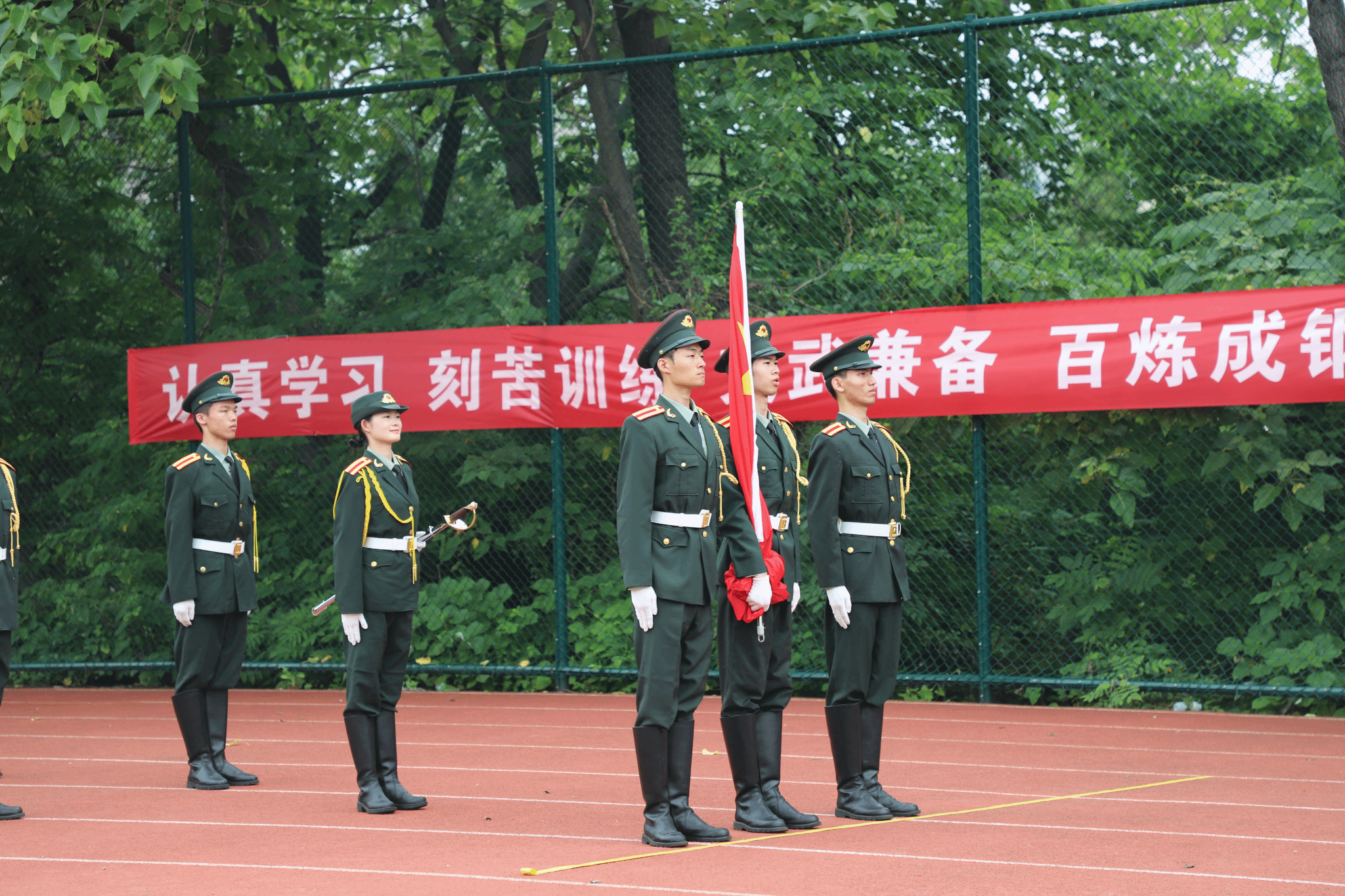 接到比赛通知以来,永利学生工作部、武装部从国旗护卫队中选拔出18名学生组成代表队,组织队员利用课余时间,加班加点进行训练。比赛中,18名队员着装统一、队列整齐、步伐有力、口号响亮、精神饱满,展现了奋发进取、昂扬上进的青春风采,获得了评委们的一致肯定,获得佳绩。