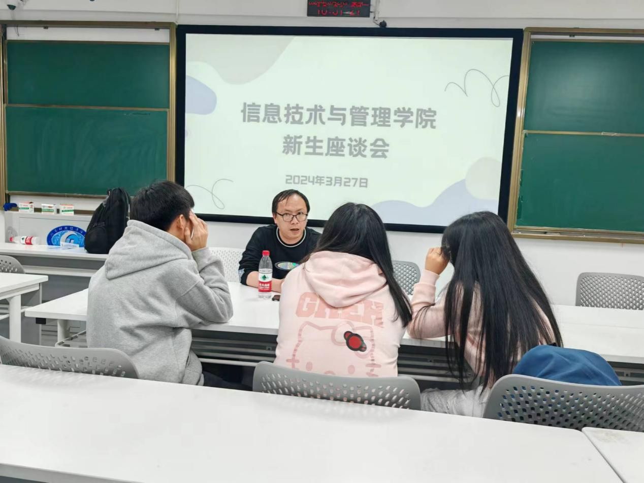 为解答新生在学习上的种种困惑,引导他们更好地适应大学生活,明确学习方向,提升学习能力,信息技术与管理学院于3月27日下午,在雷锋校区至诚楼L1202成功召开了一场新生学习交流座谈会。此次座谈会由学院教学副院长郎琳主持,各系主任、新生班级辅导员以及各班级学生代表参加。