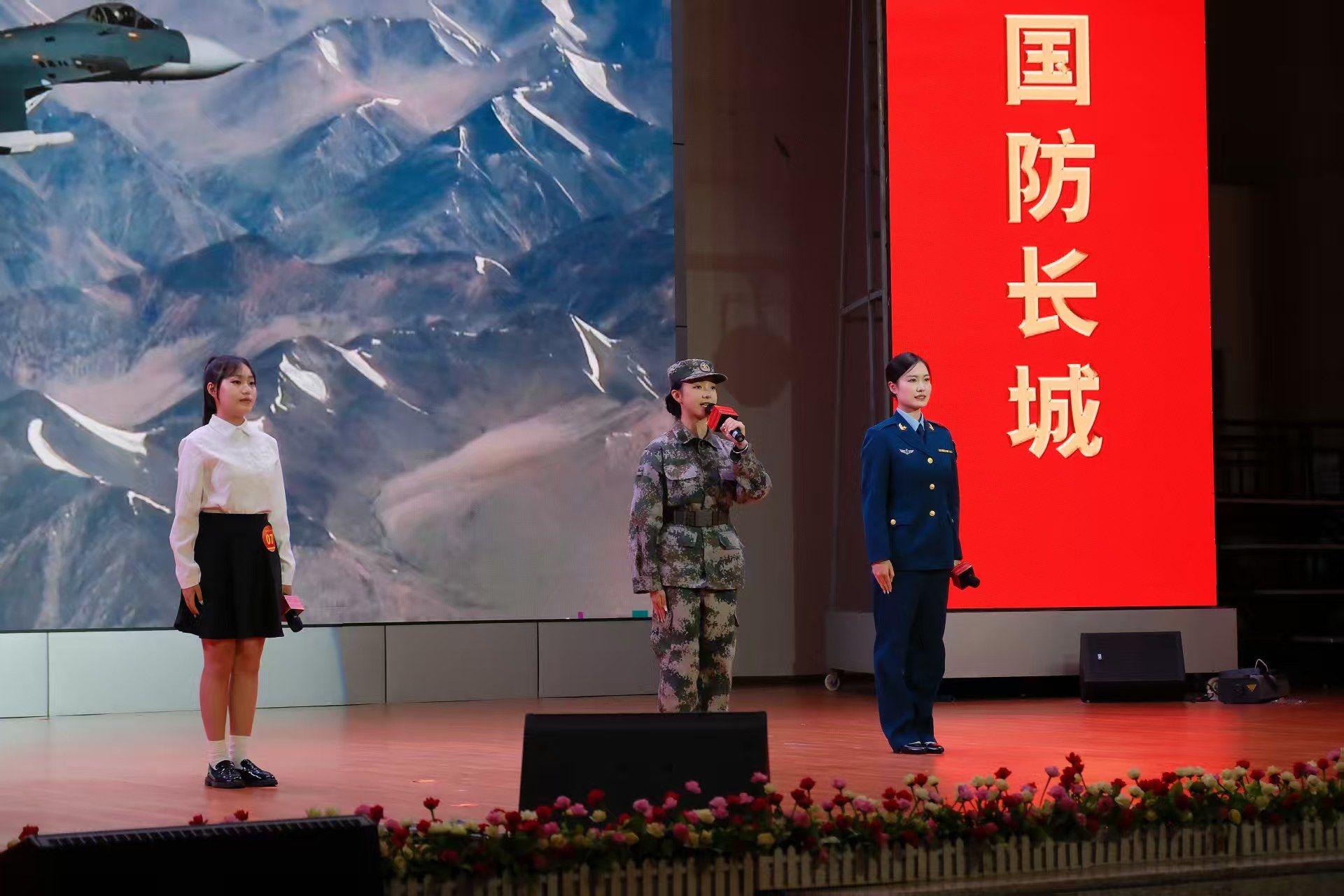 人文与艺术学院2024级的谭湘、康馨月、易文佳三位同学通过角色扮演生动呈现了一段《穿越时空的对话》。她们的表演再现了戍边英雄的铮铮誓言以及当代青年的责任担当,展现了国防精神在岁月中的传承力量,最终荣获优胜奖。