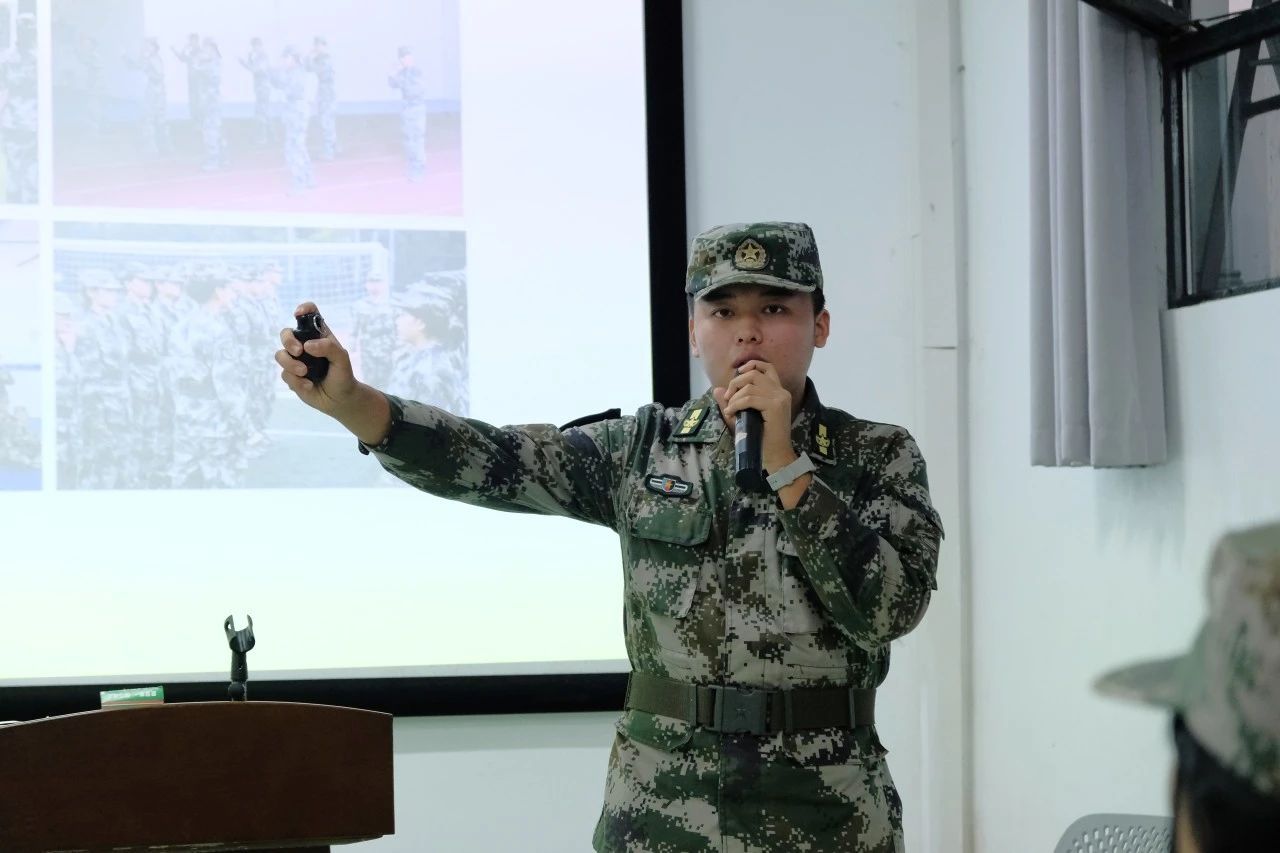 此次分享会分为7个板块,分别由永利7位参加了2024年7月份省军区四会教练员培训的教官进行分享。他们分别从军事理论、“四会”教学考核、日常队列训练、医疗救护、战术、轻武器射击、投弹这七个方面分享了他们在省军区训练的心得体会。