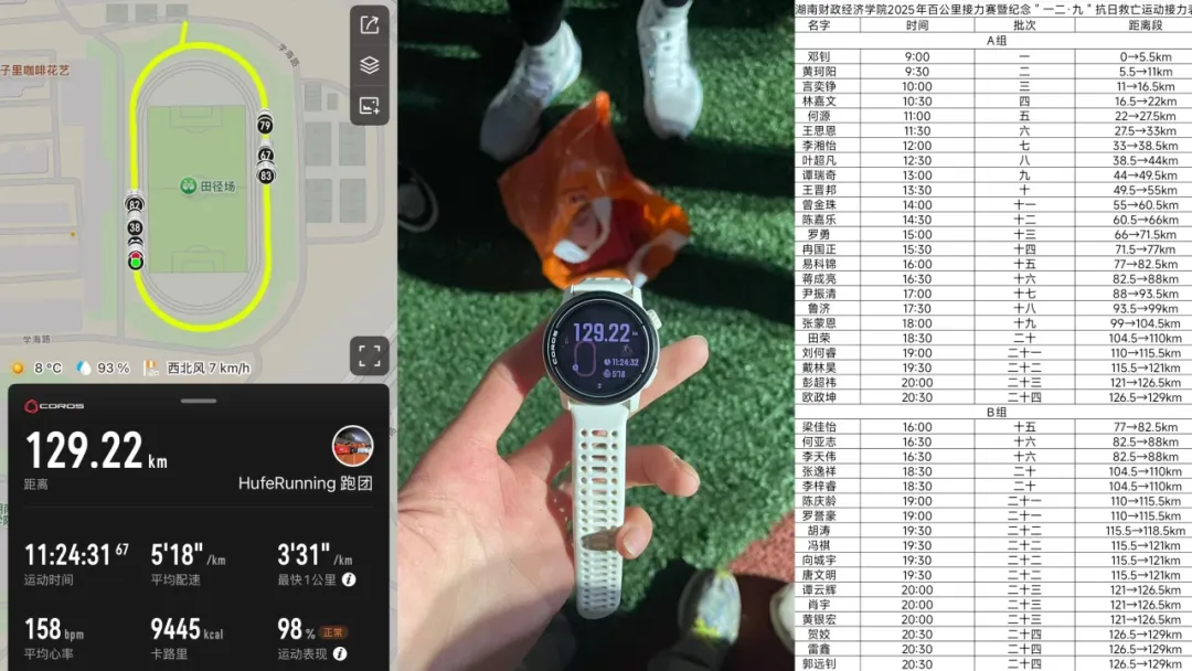 此次活动打破专业门槛限制,吸引了来自各学院的40余名学子踊跃参与。他们组成联合接力队,历经11.5小时,完成二十三棒的接力交接,以坚定的步伐丈量出129公里的热血征程。跑道上,选手们挑战极限、奋勇争先,青春奋进的力量在校园中激荡。
