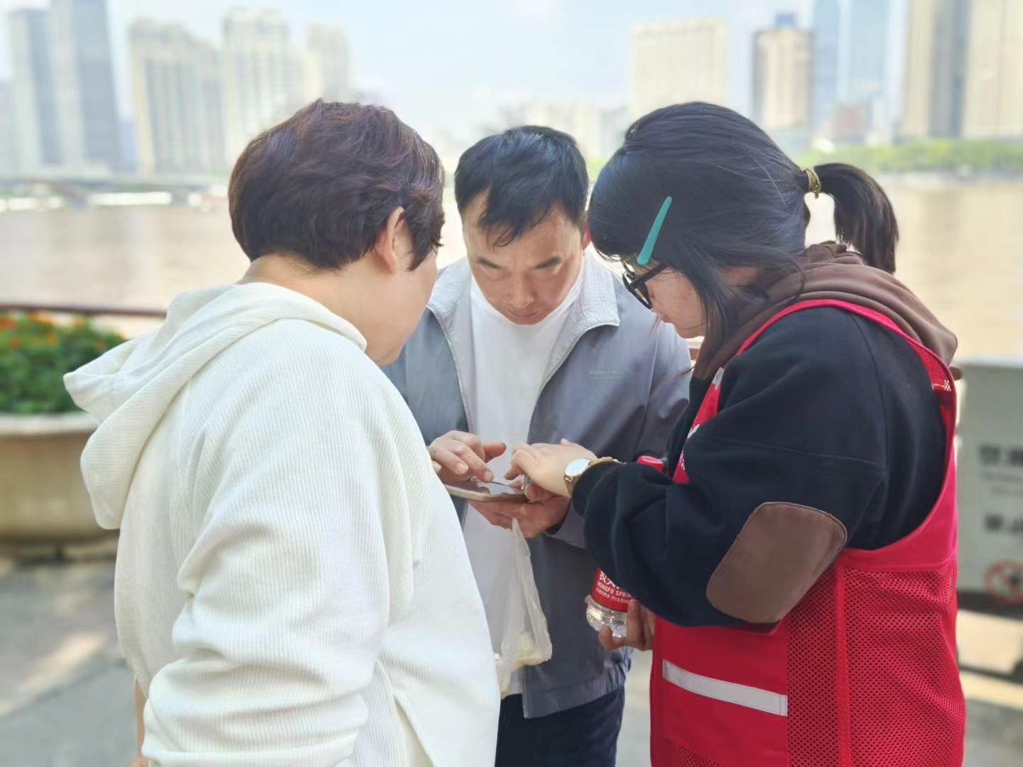 湖财青年身穿红马甲在橘子洲景区的地铁出入口、游客中心、景区预约入口等地为游客提供暖心服务,从咨询指引到行李寄存、寻人寻物,始终以饱满的精神状态笑脸相迎,热心细致地服务游客,耐心解答游客问题,用一抹“可爱”的志愿红为长沙再添一道靓丽风景线。
