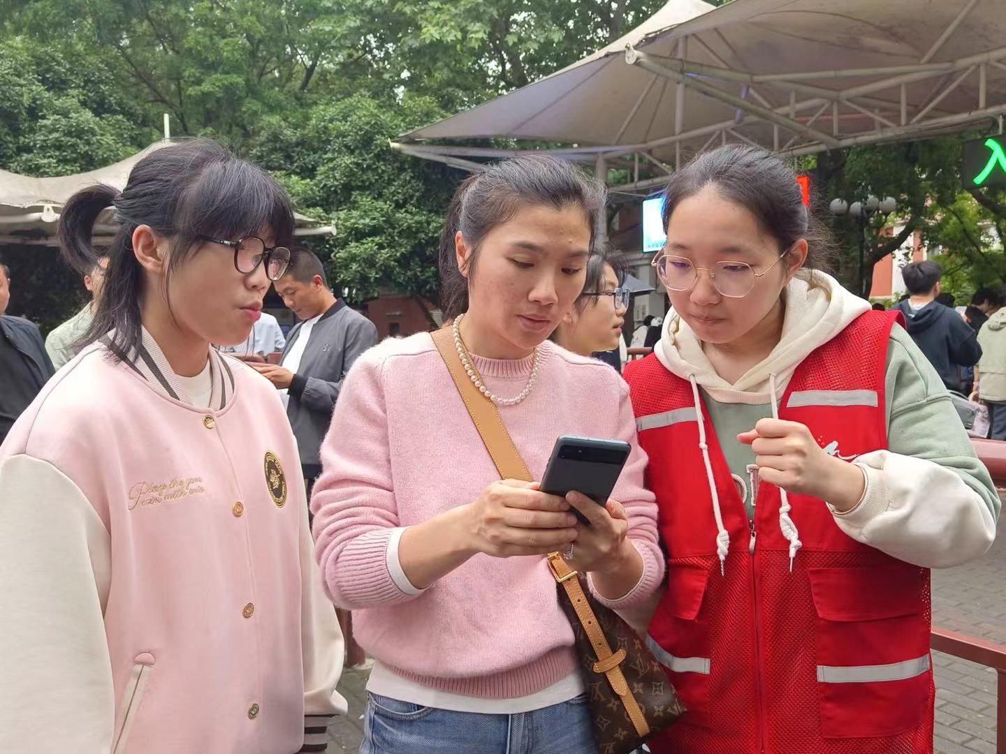 在景区步行入口,永利青年志愿者林婷婷协助游客进行预约