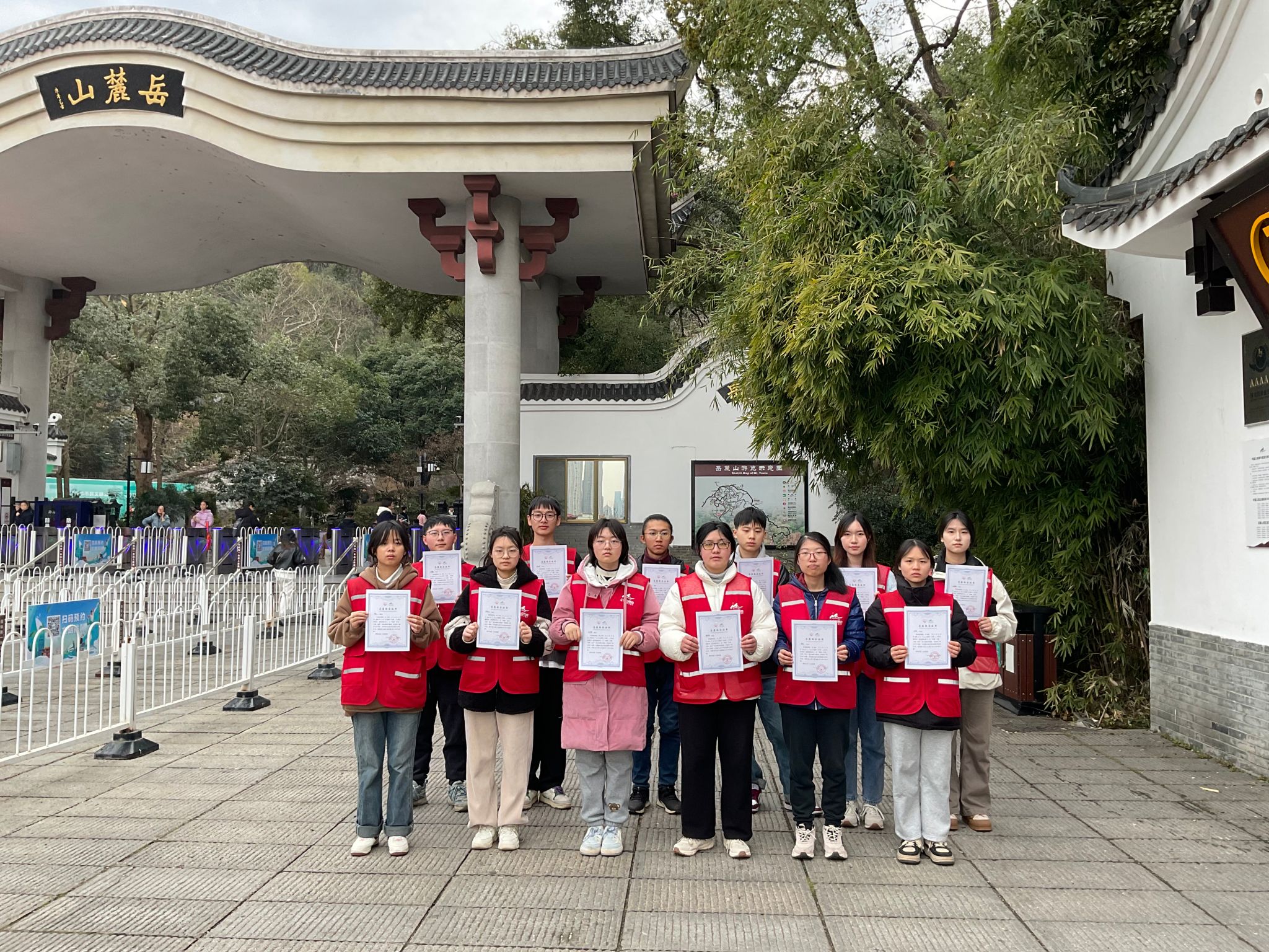 图为岳麓山景区志愿者手持证书合影留念 刘康摄