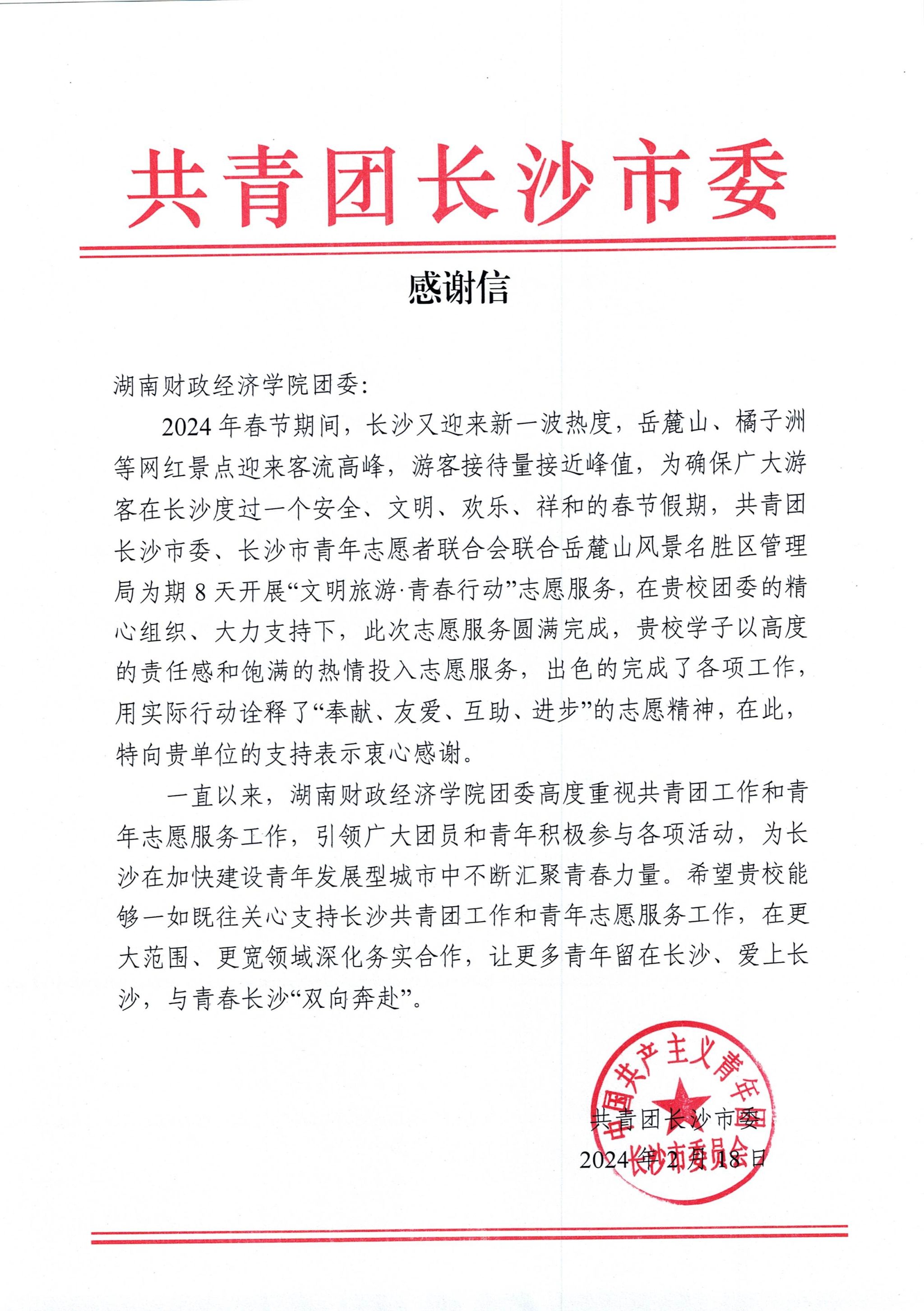 玉兔辞旧岁,金龙迎新年,新春佳节,四海游客,八方来宾到访星城长沙,橘子洲、岳麓山景区迎来客流高峰,在共青团长沙市委和岳麓山风景名胜区管理局的联合指导下,长沙市文明旅游青年志愿服务总队有序组织开展“文明旅游·青春行动”志愿服务,永利学生积极报名参加,向社会各界展示了湖财学子无私奉献、积极向上的良好精神风貌。