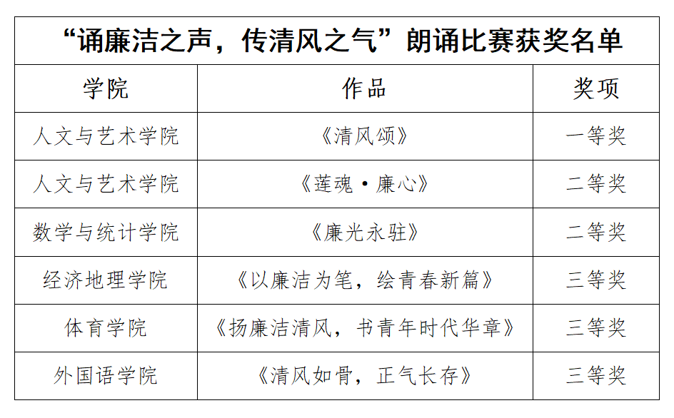 此次“诵廉洁之声,传清风之气”朗诵比赛决赛作为校园学术节的重要活动之一,不仅为同学们提供了一个展示自我、锻炼自我的平台,更通过朗诵这一艺术形式,让廉洁文化深入人心,在校园内营造了崇廉尚洁的良好氛围。相信在廉洁文化的滋养下,同学们定能茁壮成长,成为有理想、有道德、有担当的新时代青年,为构建清正廉洁的社会贡献自己的力量。
