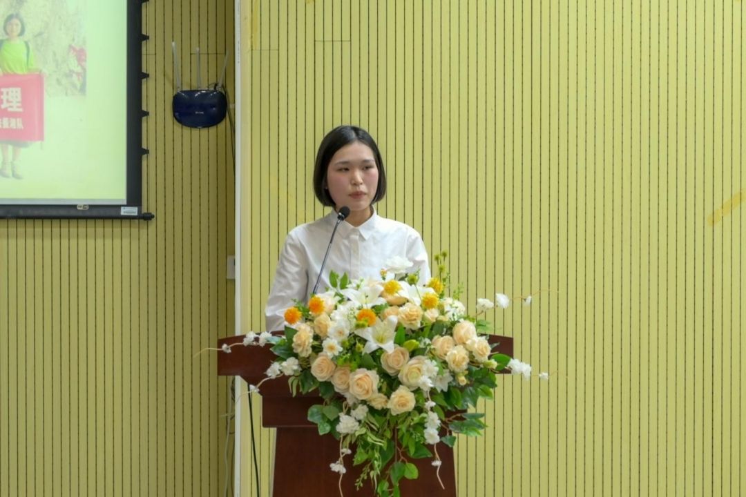 小易志愿服务队带队老师周雅作为优秀指导者代表上台发言。周雅向关心与支持小易志愿服务队的领导老师表示衷心的感谢。他表示小易志愿服务队队员热爱乡村这片沃土,下乡过程尽管面临诸多困难,但他们仍高质量地完成了实践调研工作。同时,他也充分关心队员们的身体健康并认真指导相关工作,为小易志愿服务队工作的顺利开展保驾护航。