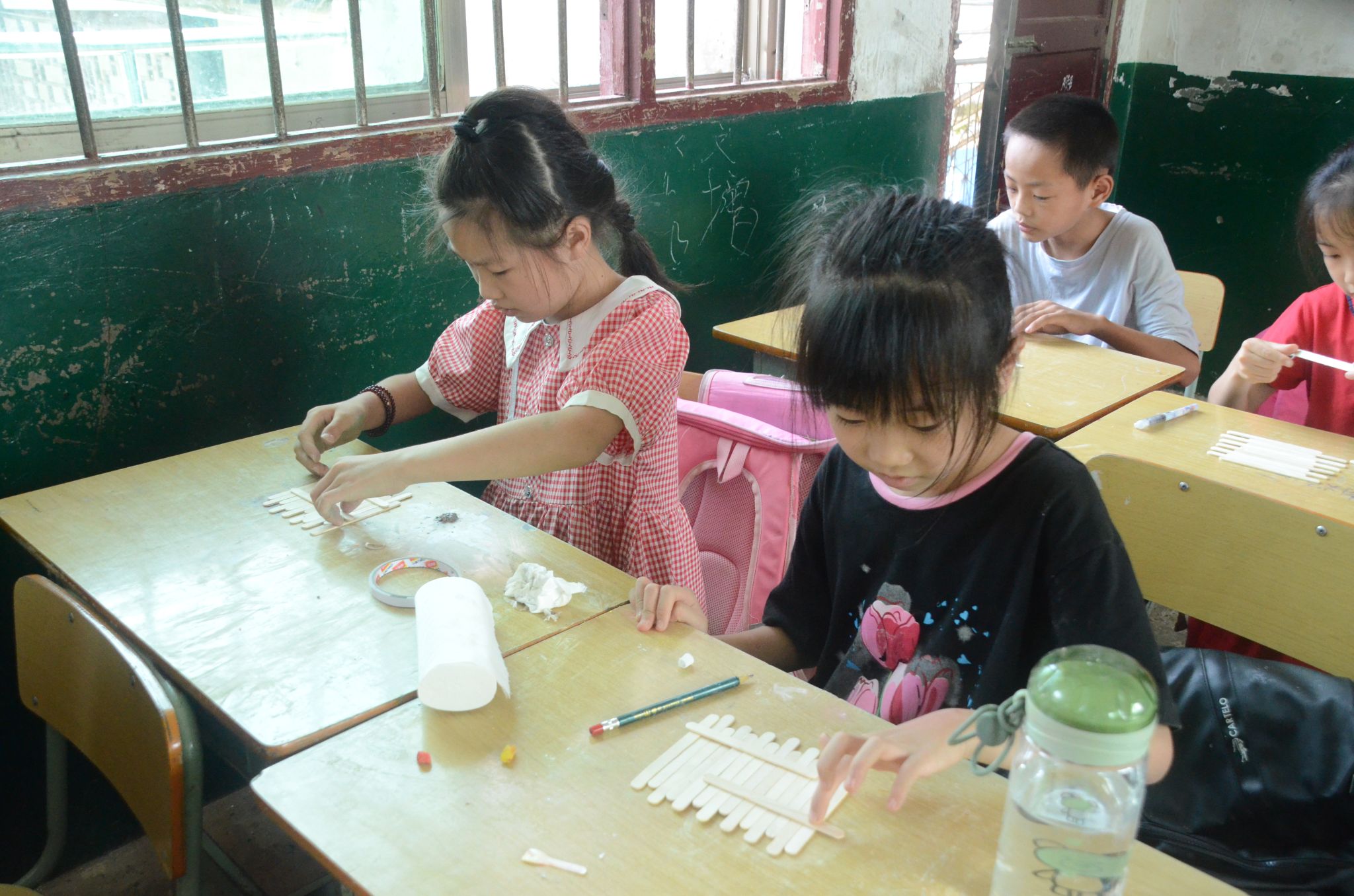(图为流萤志愿队手工课堂小朋友进行手工创作 冷雨冰摄)