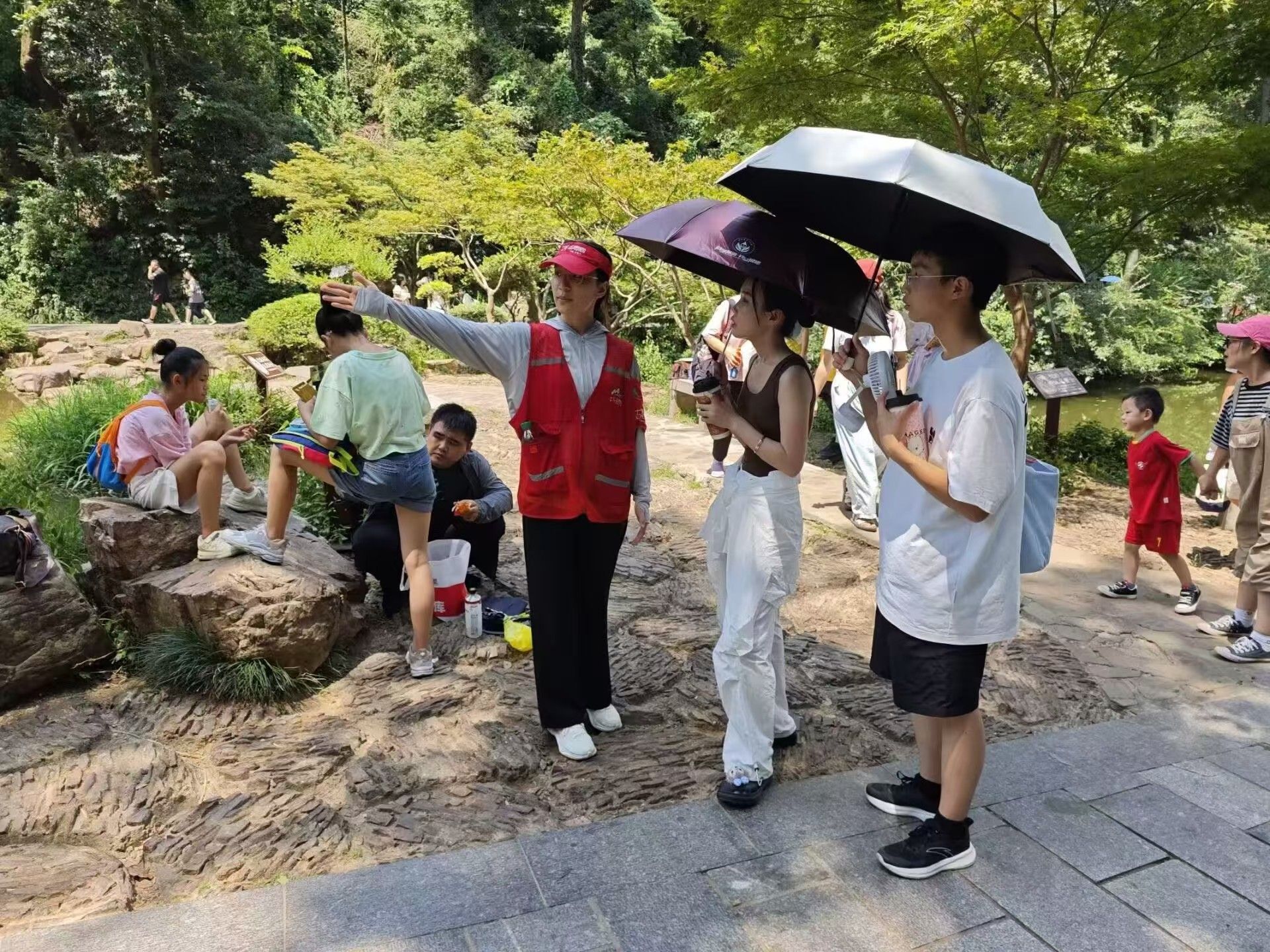 烈日酷暑,广大湖财青年志愿者坚守岗位,以饱满的精神状态笑脸相迎八方来客,暖心服务四海来宾,为广大游客提供旅游咨询、文明引导等一站式便民贴心服务,在需要时伸出帮助援手,于细微处提供暖心服务,用奉献传递人间温情,用行动诠释青春担当,营造出文明有序的游园氛围,打造了“舒心、放心、安心”的旅游环境,切实提高游客游园体验,向社会各界展现了湖财青年志愿者昂扬向上的精神风貌。