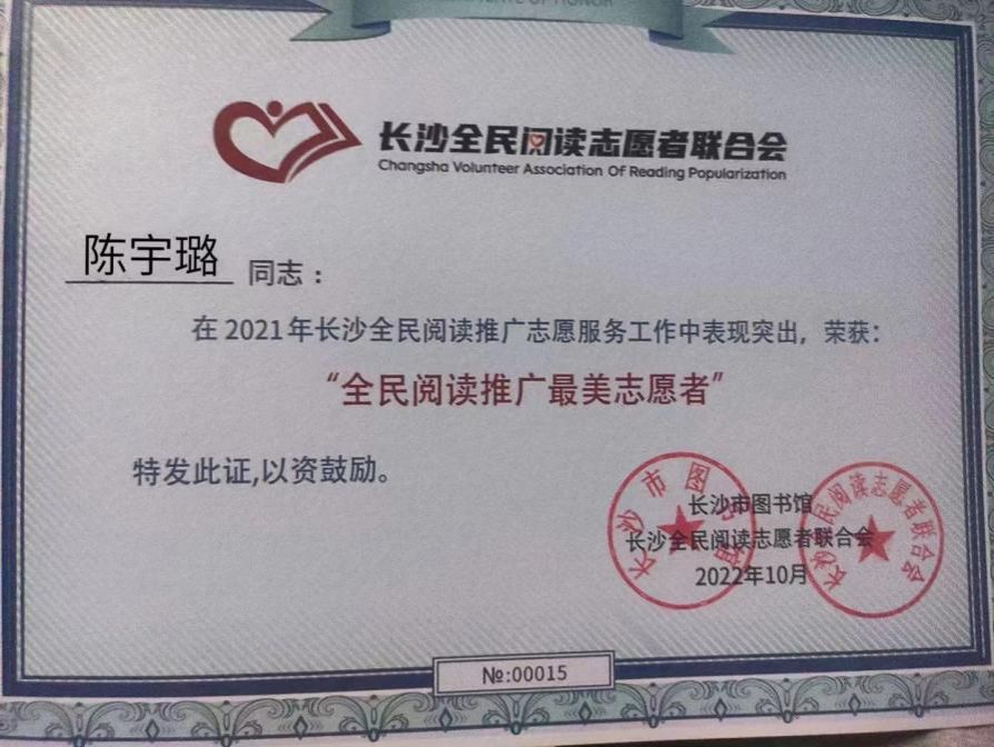 “请党放心,强国有我”,这是陈宇璐对党的铮铮誓言。她愿意将自己的专业知识付诸实践,为社区的发展贡献自己的力量。在长沙铜官窑博物馆和醴陵陶瓷博物馆的志愿活动中,她带领团队用中英双语制作视频,宣传瓷器文化,助力瓷器走向世界。这些努力不仅得到了社会的认可,更为她赢得了诸多荣誉。