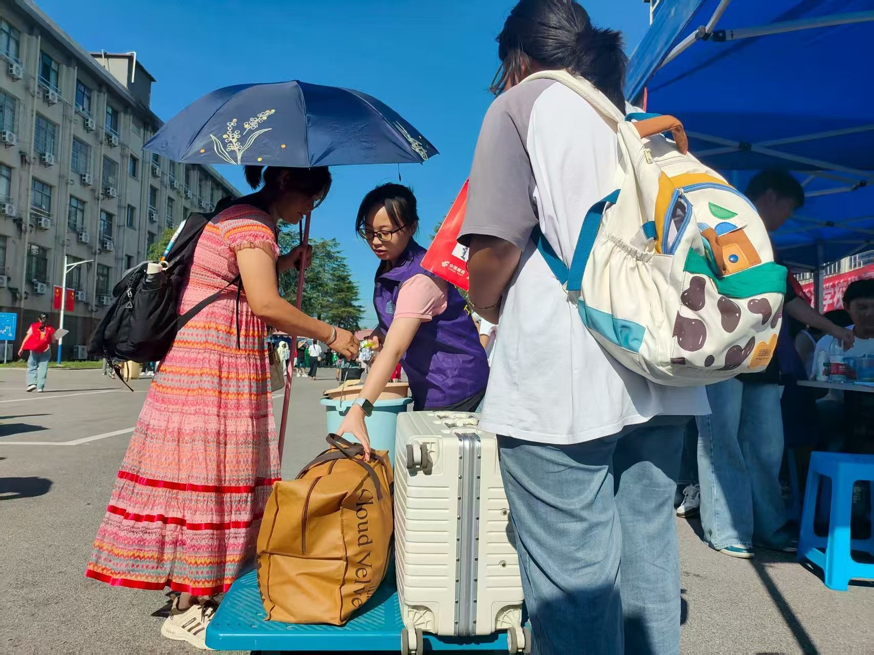 他们以饱满的热情、昂扬的姿态迎接每一位新生,提前熟悉迎新流程,明确分工、高效协作——从校门口引导新生入校,到协助办理报到手续,再到讲解校园设施分布、介绍住宿安排,全程耐心解答新生关于学习规划、生活服务的各类疑问。志愿者们不辞辛劳的身影、细致贴心的服务,为新生筑牢了入学“第一站”的温暖防线。