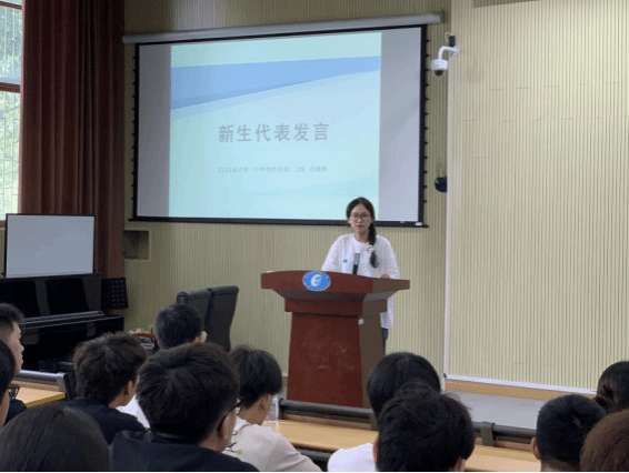 老生代表余雅诗结合自身经历,从自我成长、人际关系和冒险精神三个角度分享体会,助力新生更快适应大学生活,从容开启精彩的大学生涯。新生代表石婉婷在发言中表示,大学四年是全新的起点,面对挑战与迷茫,唯有内心坚定,方能成为更好的自己,鼓励同学们乘风破浪、忠于内心,共同创造美好未来。