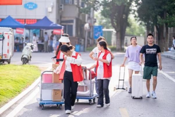迎新现场,志愿者的身影遍布校园各个角落。解答疑问时,他们耐心细致;搬运行李时,他们主动上前;引导手续时,他们周到周全。这份热忱与担当,不仅为迎新工作注入了能量,更化作一道温暖的风景线,让初入校园的新生与家长卸下拘谨,真切感受到了学校大家庭的包容与关怀。