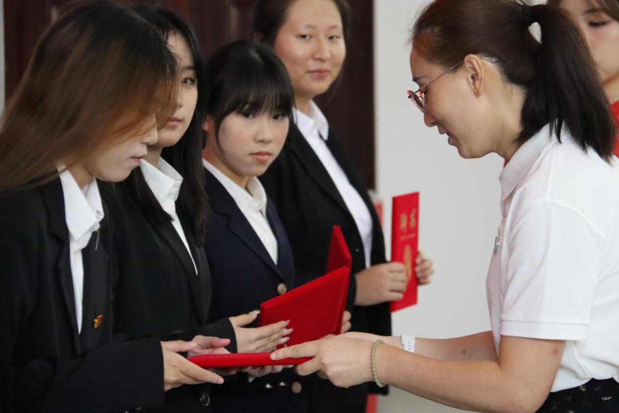 大会在庄严的国歌声中拉开帷幕。主持人介绍与会领导及大会议程后,戴恩湘发表讲话。他对上一届团总支、学生会的工作成效予以肯定,并对新一届干部候选人提出期望,勉励大家强化责任意识,积极服务同学,助力学院发展。随后,戴恩湘和肖芳分别为学生干部们颁发聘书。