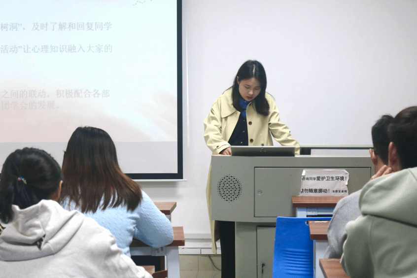 熊孝涛在会议尾声作总结讲话。她对团学会的工作提出三点要求:全体成员需严格遵守例会和值班纪律,不得无故请假;全体成员需明确自身职责,提升责任意识;加强内部团结,共同协商解决问题,避免团学会内部产生矛盾。
