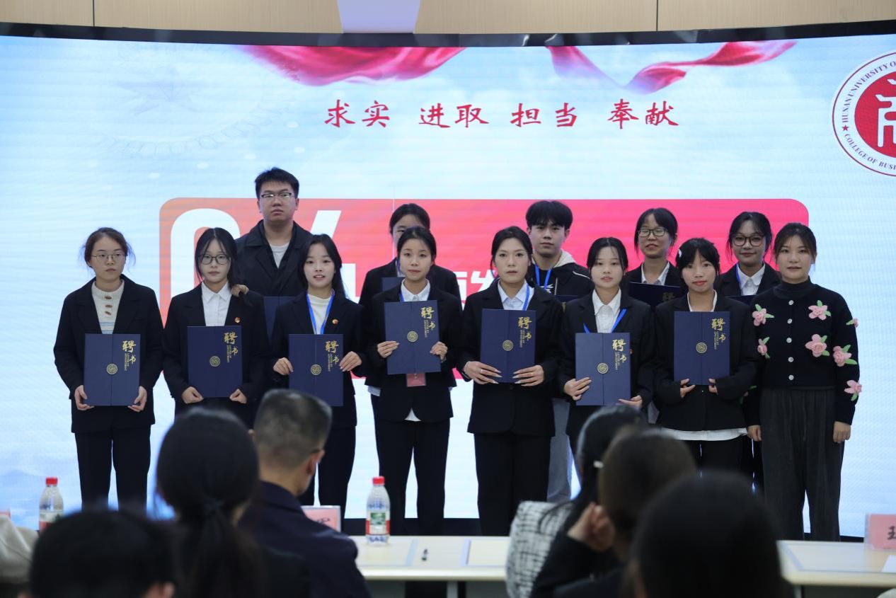 在表彰环节,与会老师依次为第八届团学会主席团成员、团总支副书记、各部门部长、副部长及优秀固定志愿者颁发了聘书与荣誉证书,以表彰他们过去一年的辛勤付出与卓越表现。
