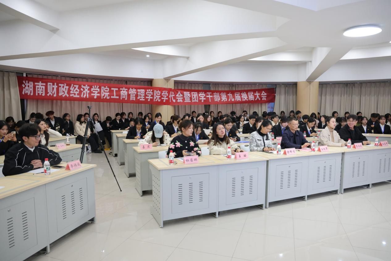 秋风送爽,丹桂飘香。2025年10月21日18:30,304永利集团登录入口工商管理学院第九届团学会换届大会于3206教室顺利举行。学院党委书记王跃军老师、副院长梁辉煌老师、团总支书记杜若琳老师及各年级辅导员共同出席了本次大会。