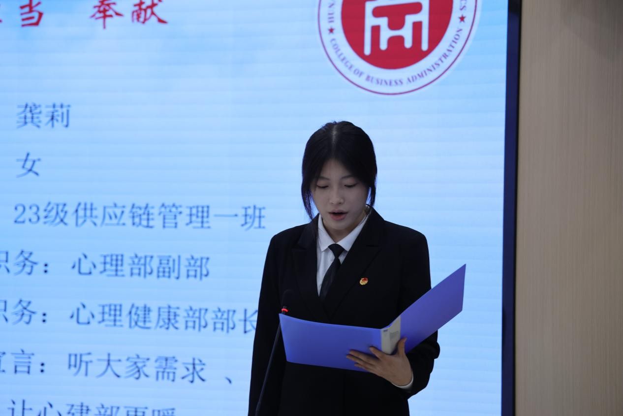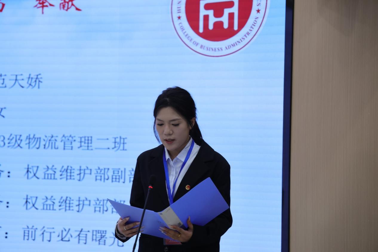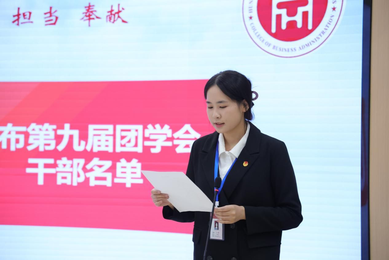 选举结果揭晓后,团总支副书记高敏宣读了第九届团学会干部名单,并向全体新任学生干部致以衷心的祝贺。